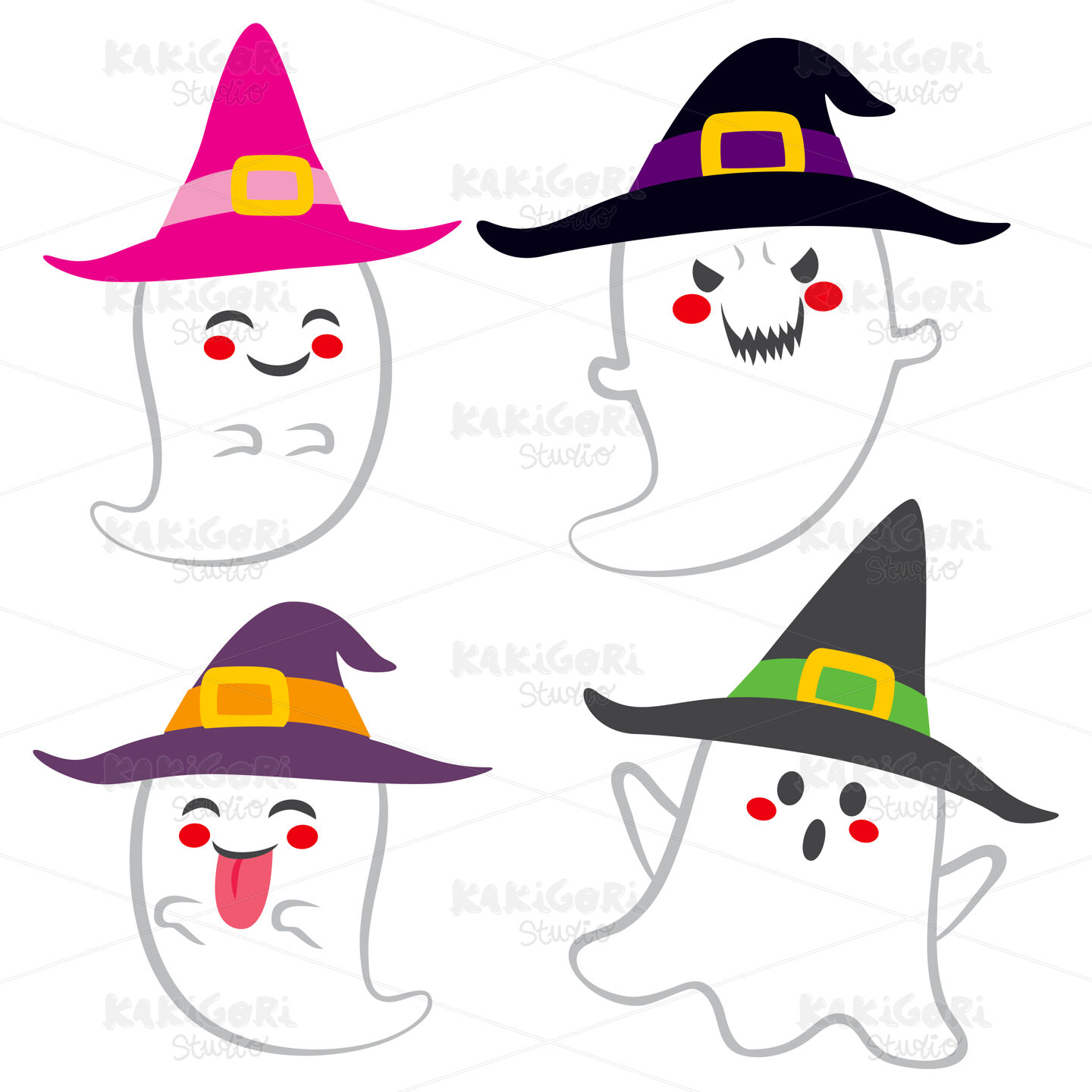 / Cute Witch Ghosts Clipart Vector Illustration 02409