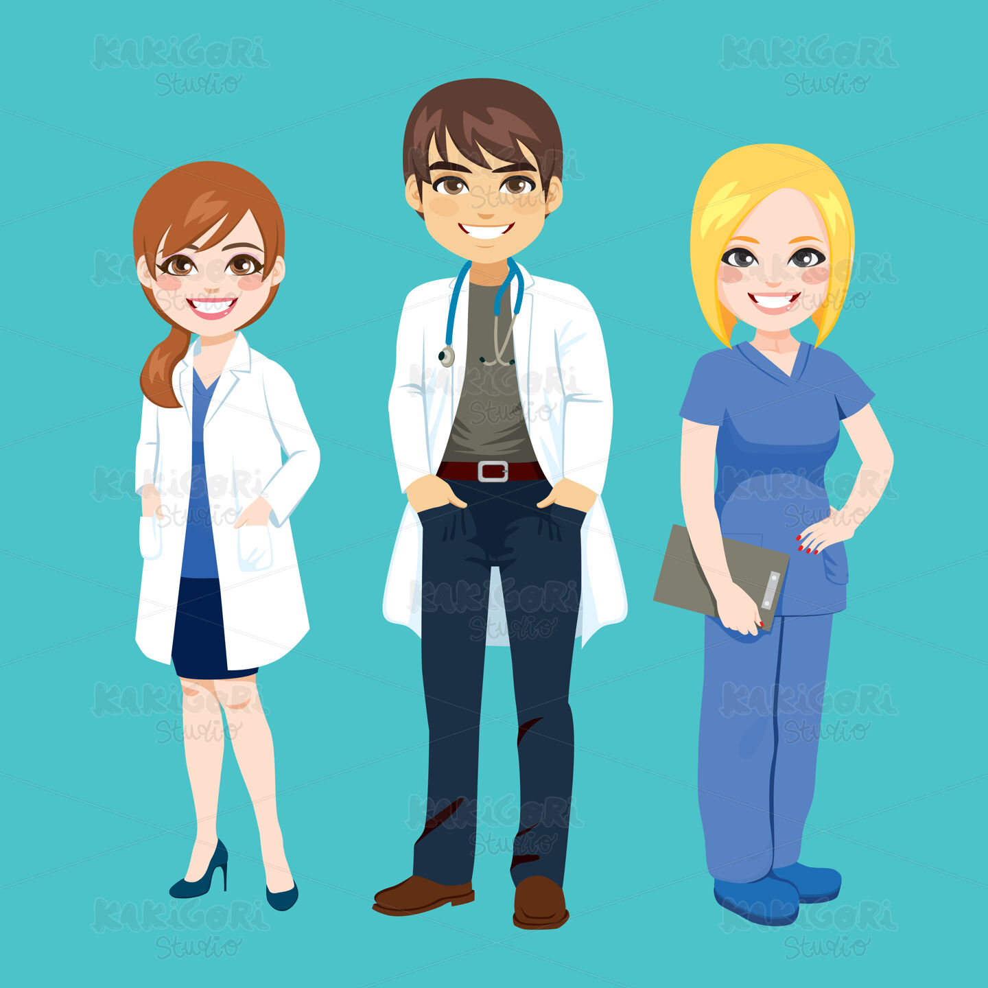 Small group of hospital medical team doctors nurse and surgeon standing smiling on green background