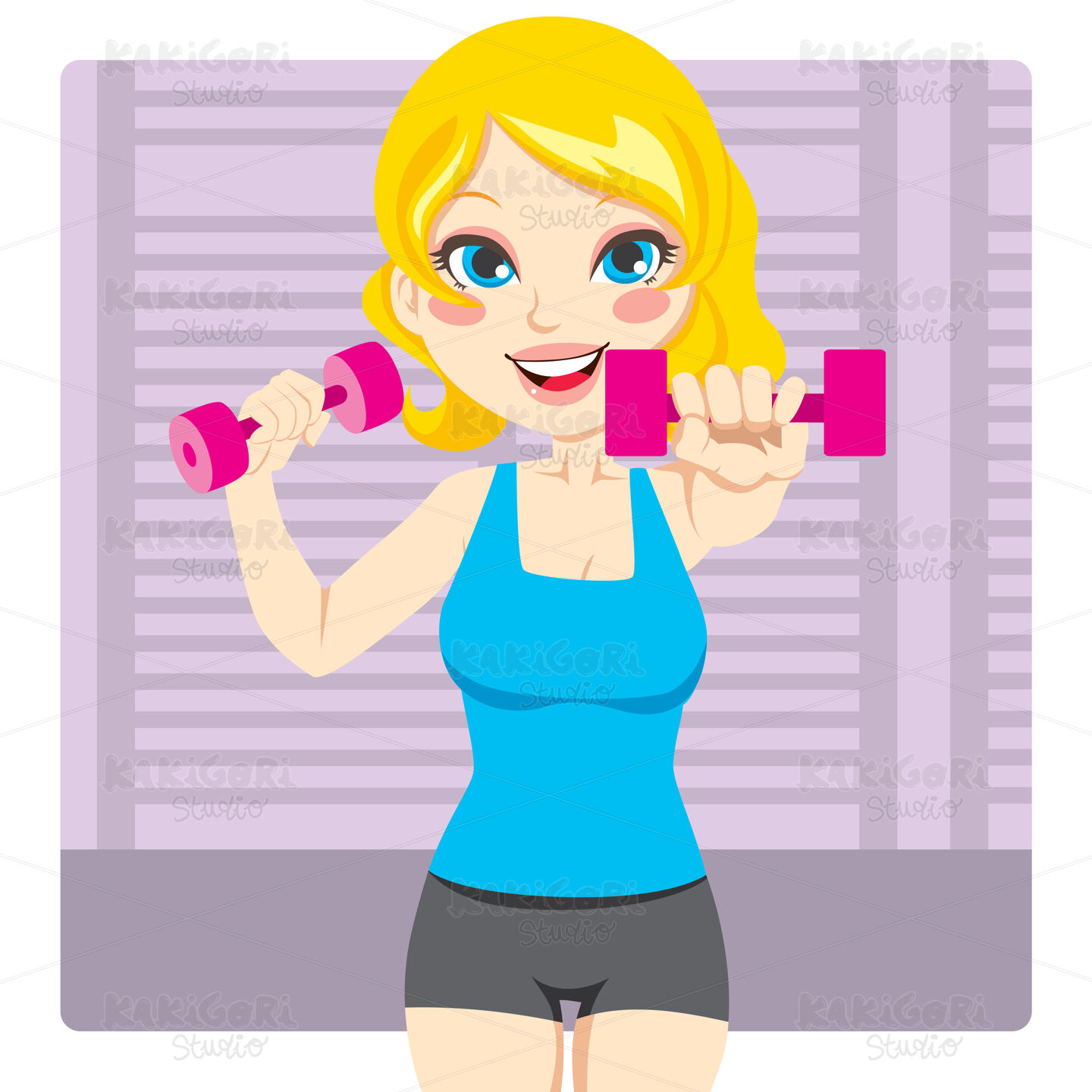 Beautiful and fit blond girl exercising with two dumbbell weights on her hands