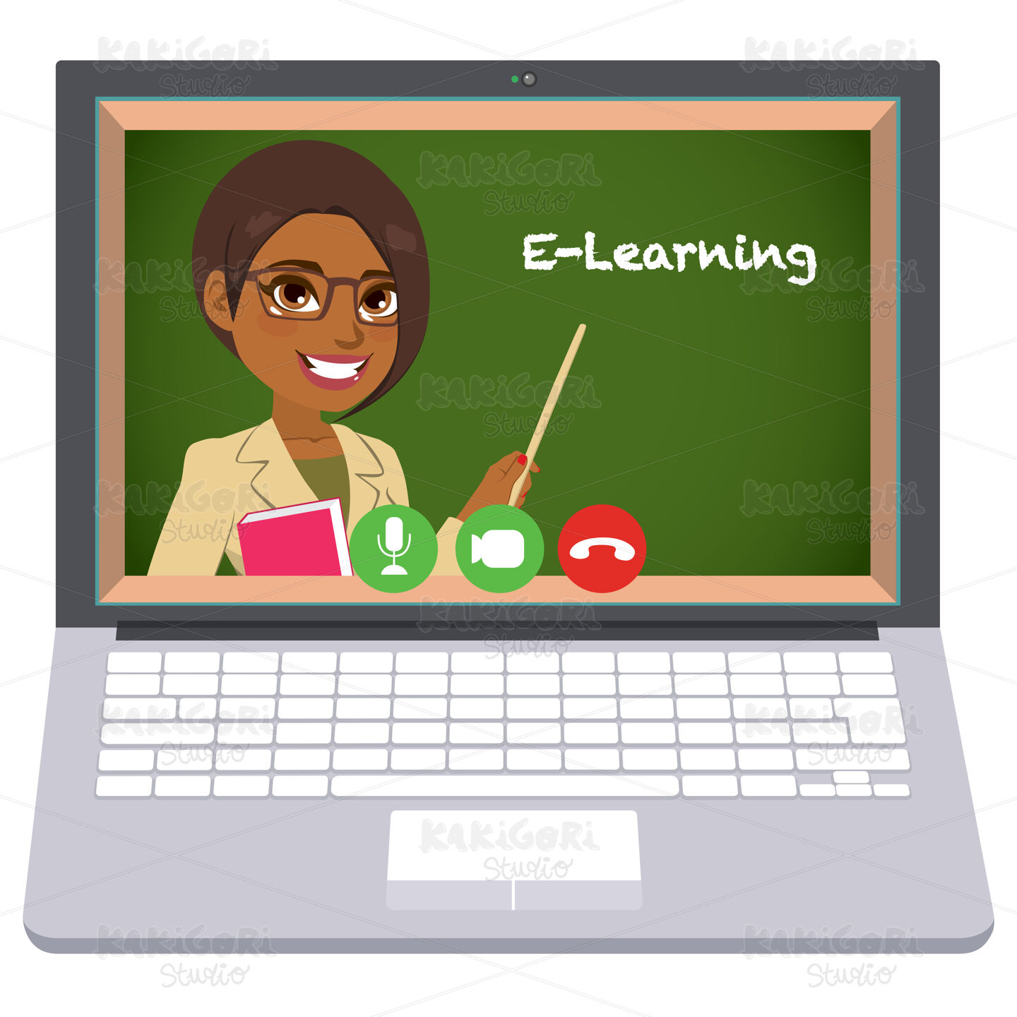 E-learning African American female teacher teaching online from laptop home schooling concept