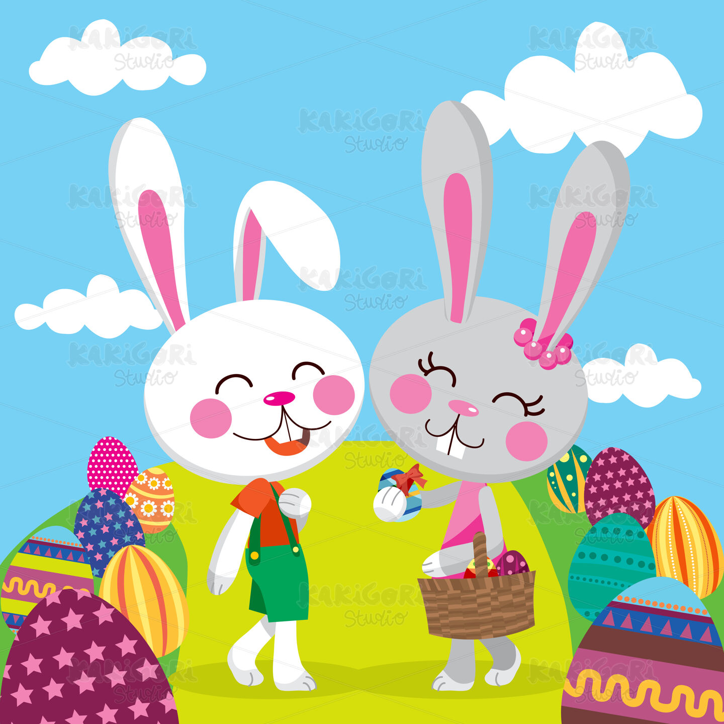 / Easter Bunny Couple Clipart Vector Illustration 00394
