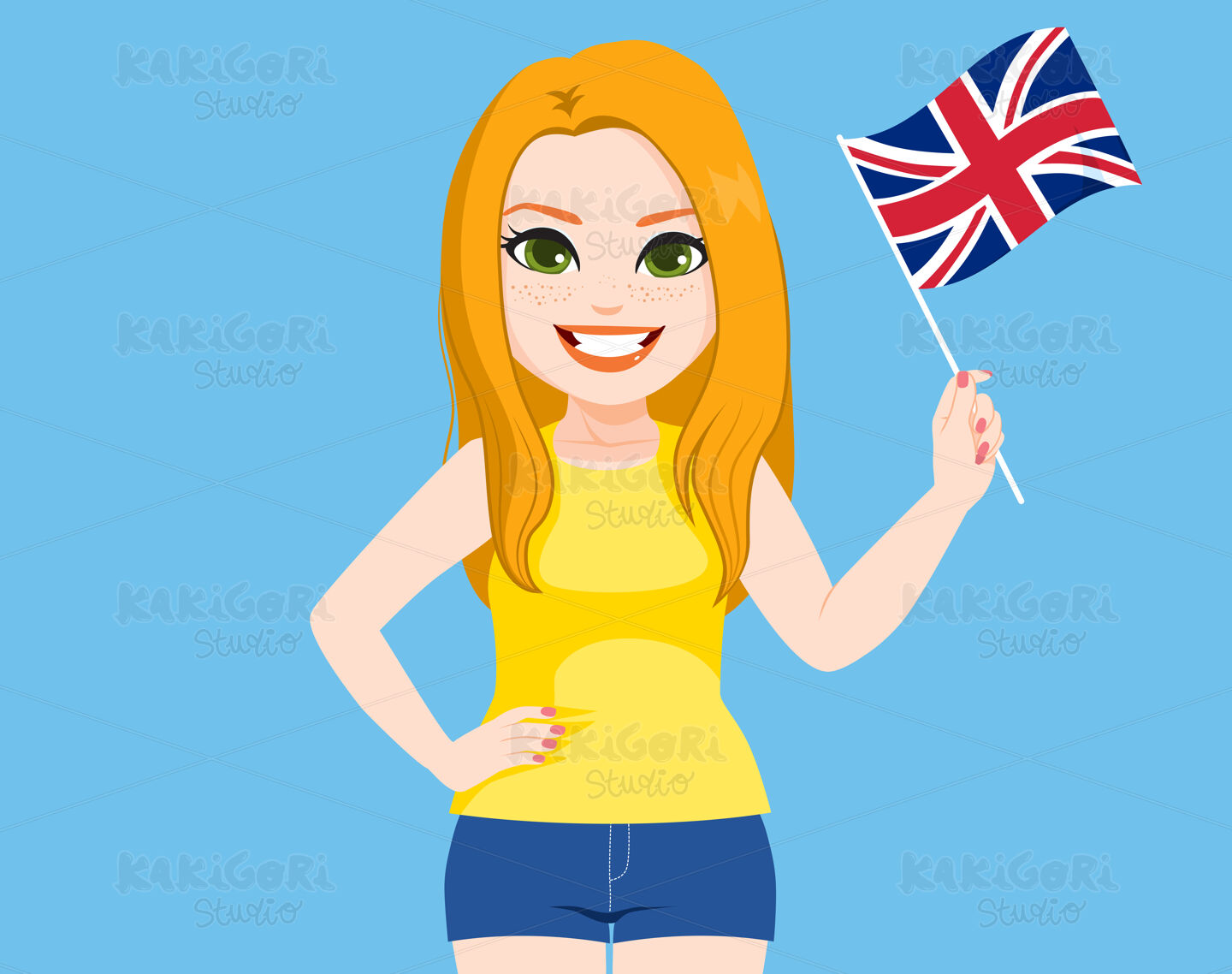 / English Woman Great Britain Flag Clipart Vector Illustration 05519