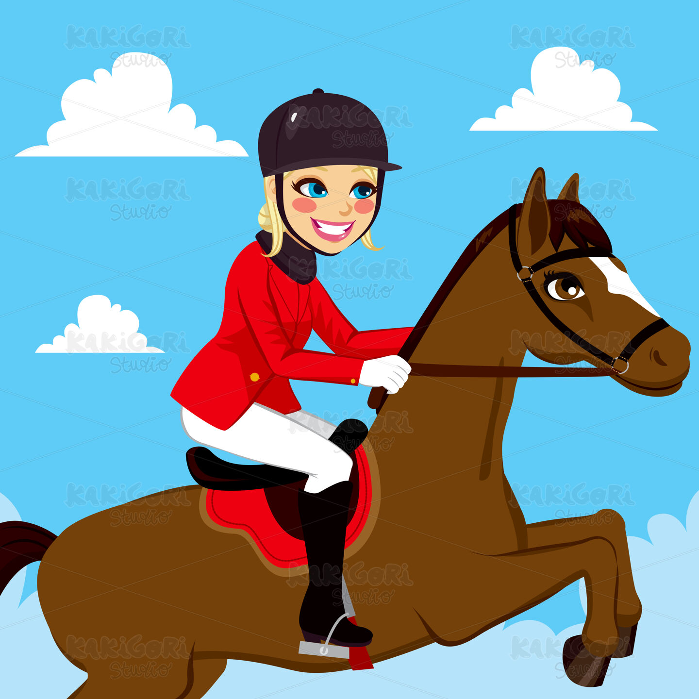 / Equestrian Woman Jumping With Horse Clipart Vector Illustration 02469