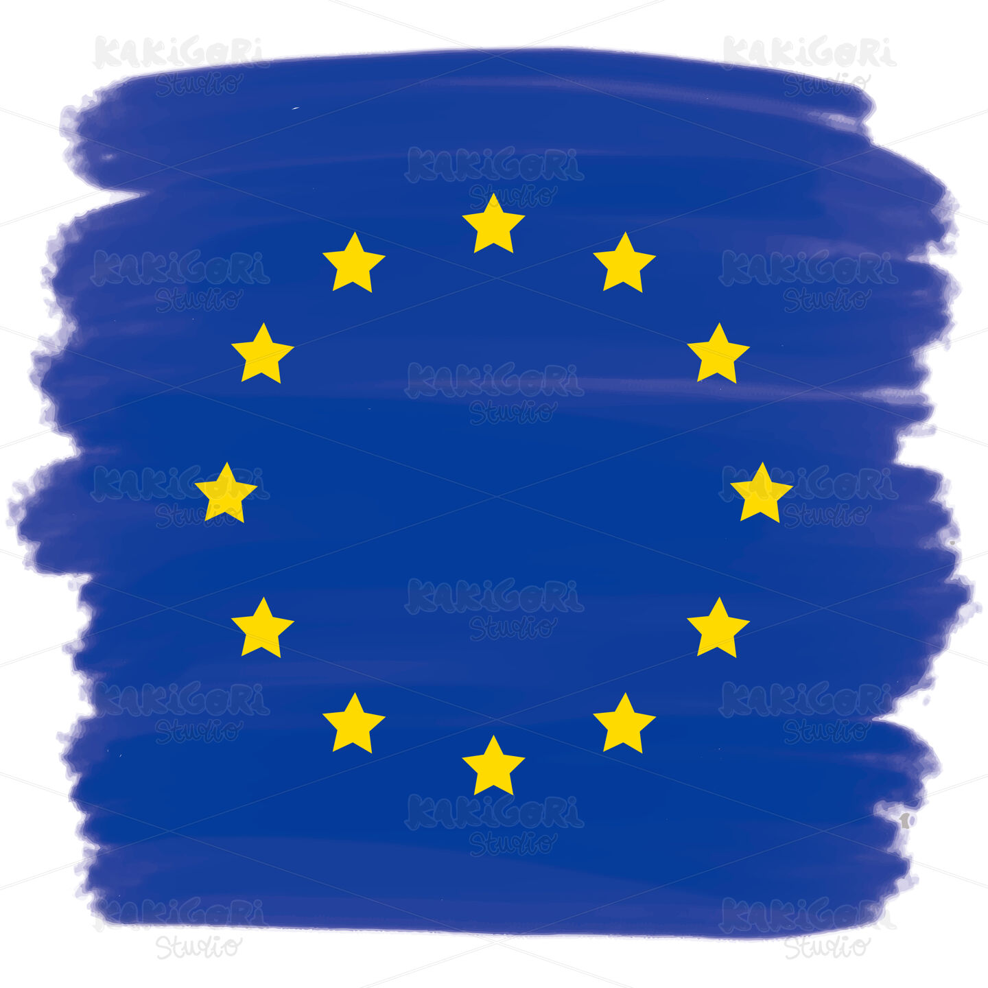 Illustration of European Union flag with blue watercolor effect and twelve yellow stars