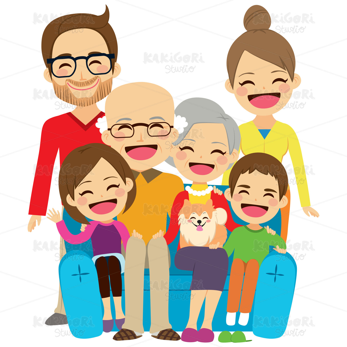/ Extended Family Sitting Couch Clipart Vector Illustration 04780