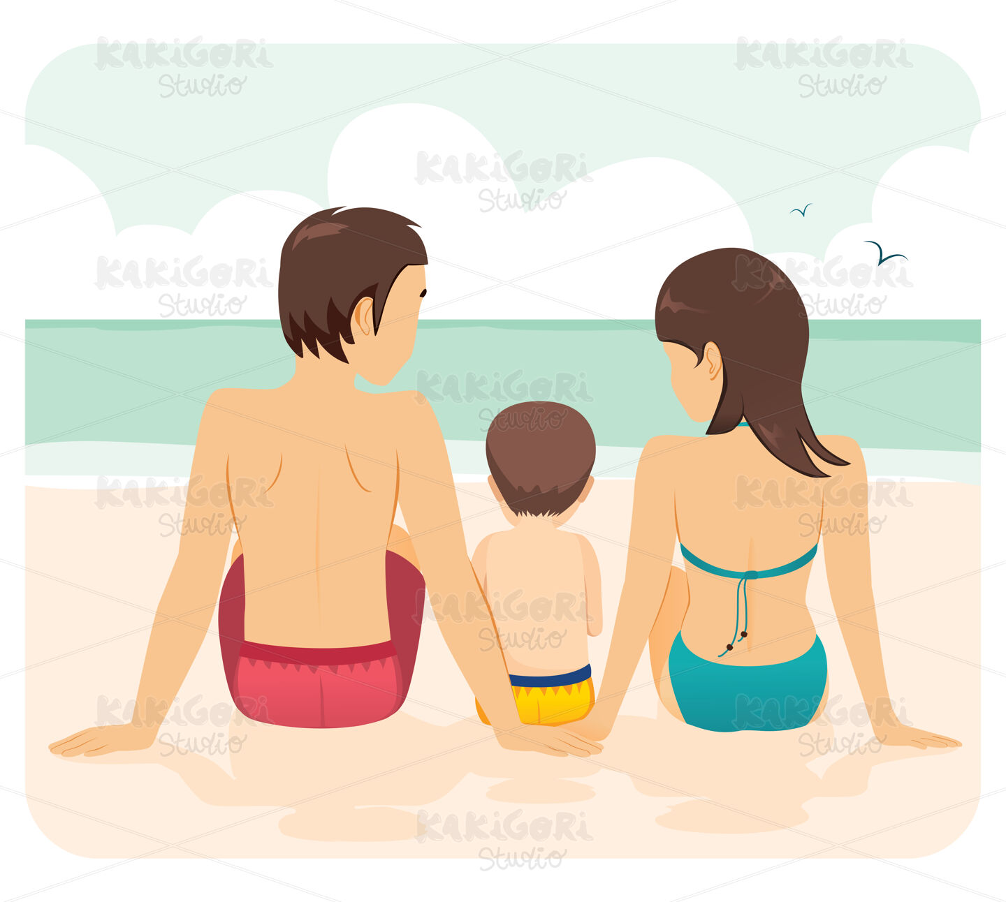 / Family Together On Vacation Beach Clipart Vector Illustration 04943