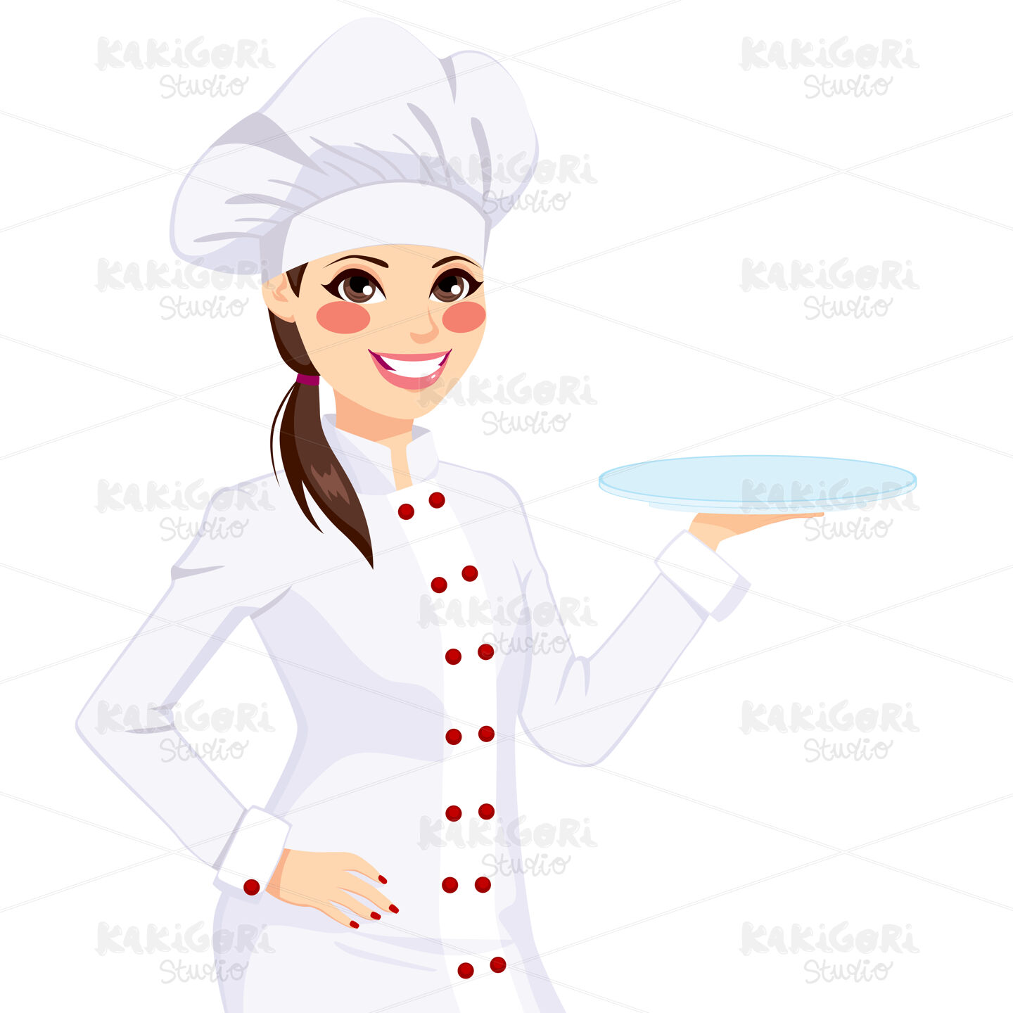 / Female Chef Holding Empty Plate Clipart Vector Illustration 01822