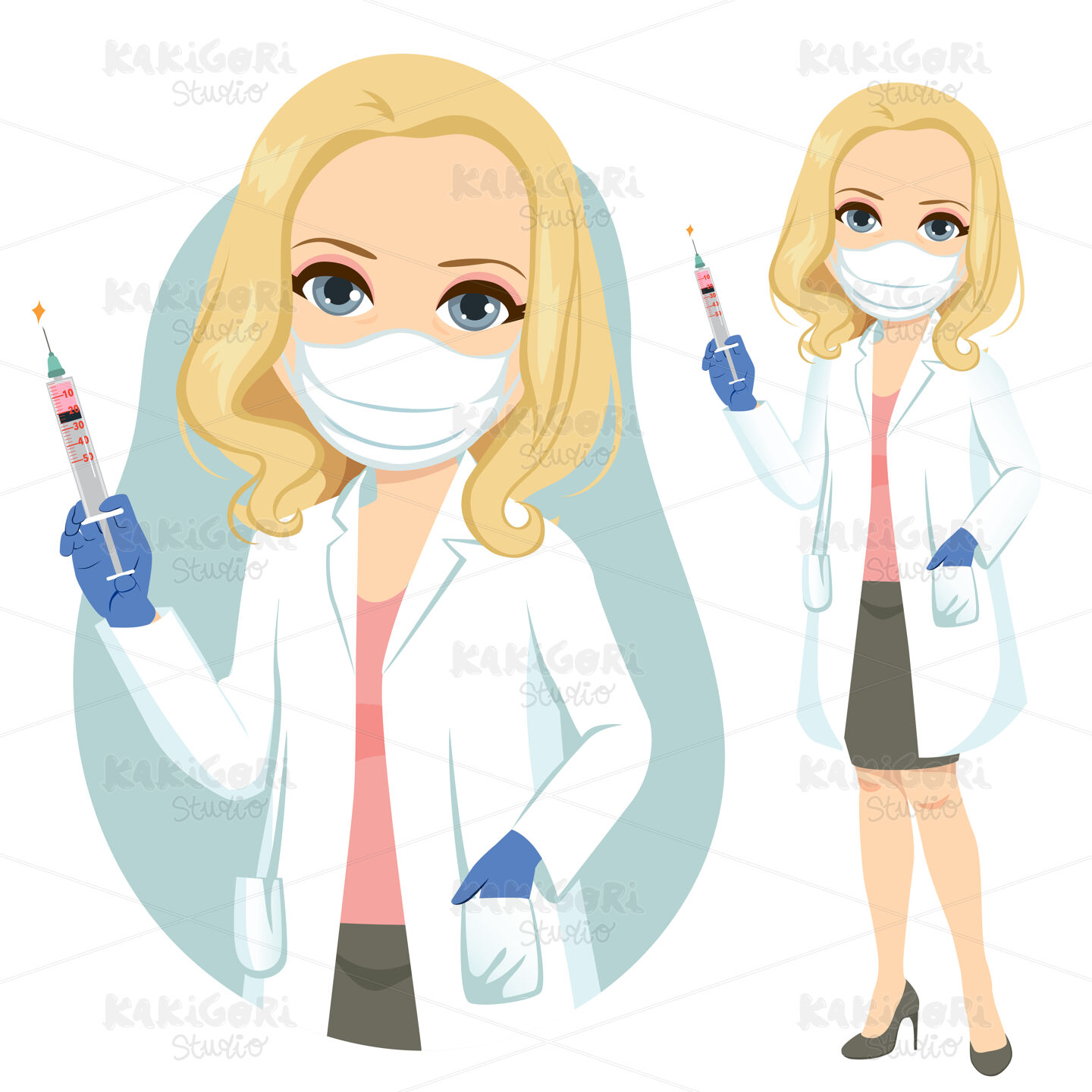 / Female Senior Doctor Holding Vaccine Clipart Vector Illustration 05279