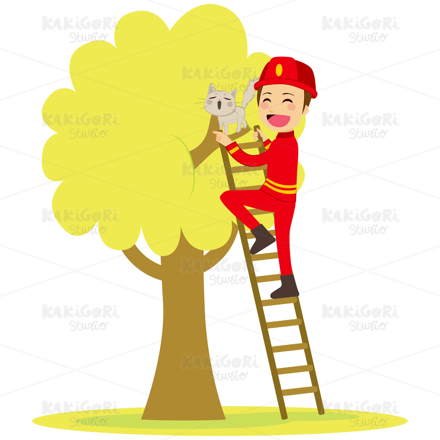 / Fireman Rescues Cat Clipart Vector Illustration 02215
