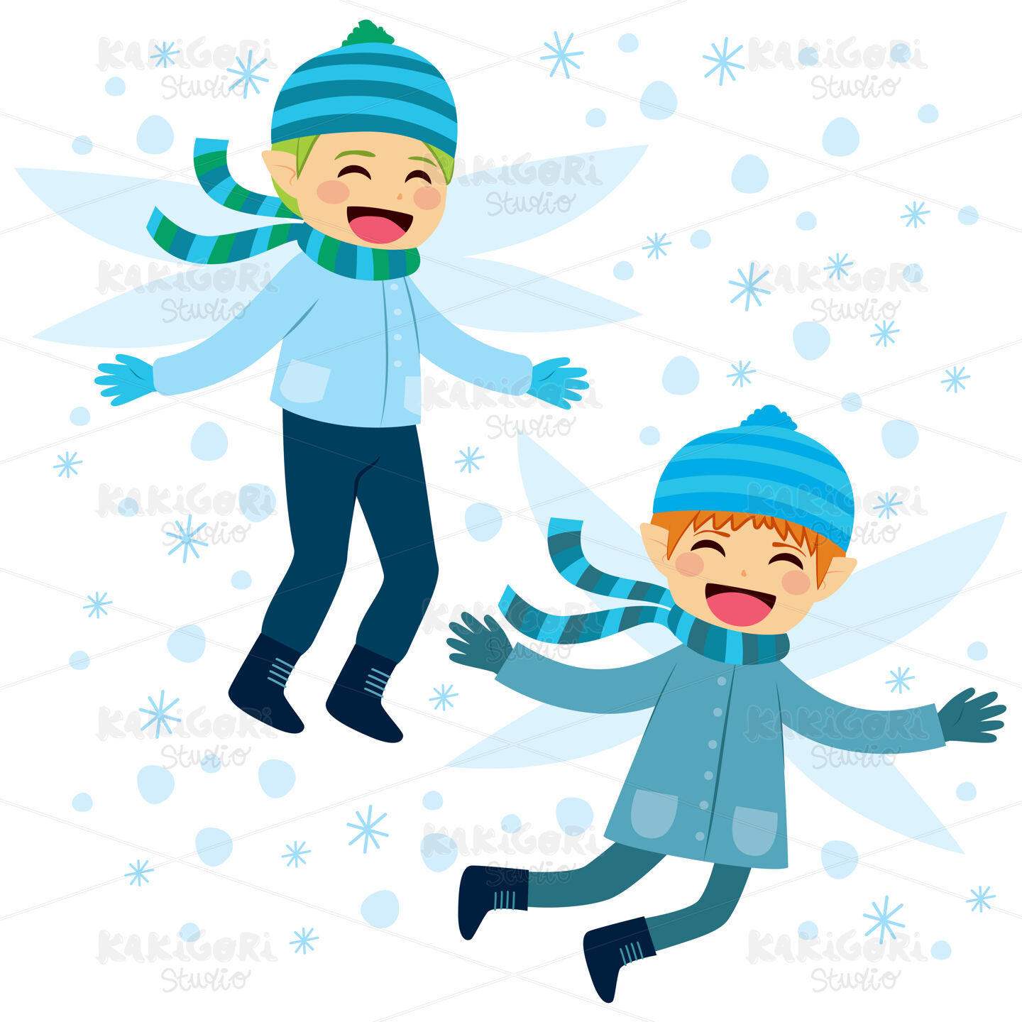 / Flying Winter Elves Clipart Vector Illustration 02253