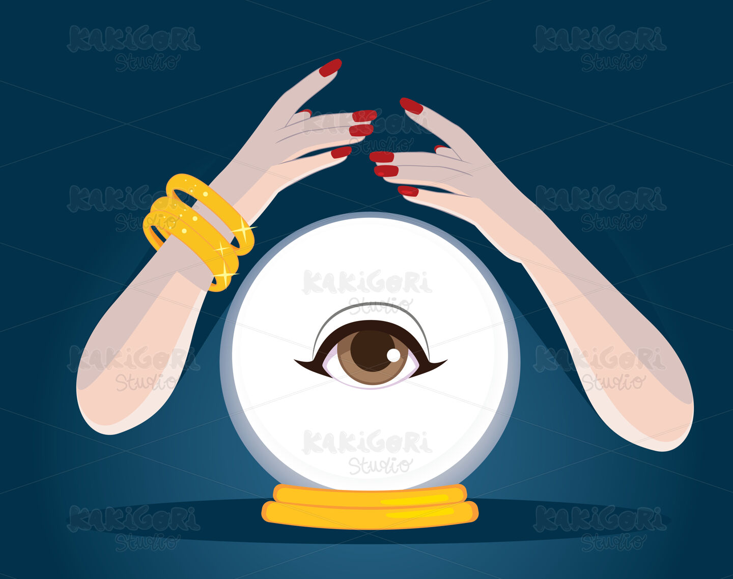 Female mystic magician fortune teller hands summoning magic crystal ball future telling