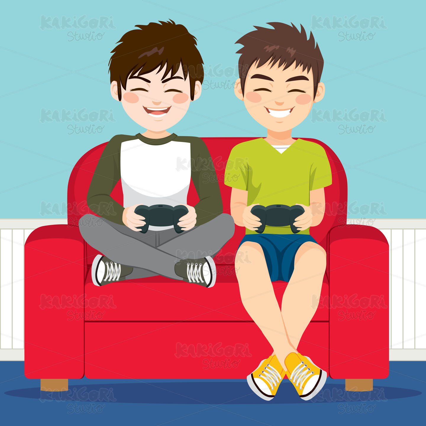 / Friends Playing Video Games Clipart Vector Illustration 03475