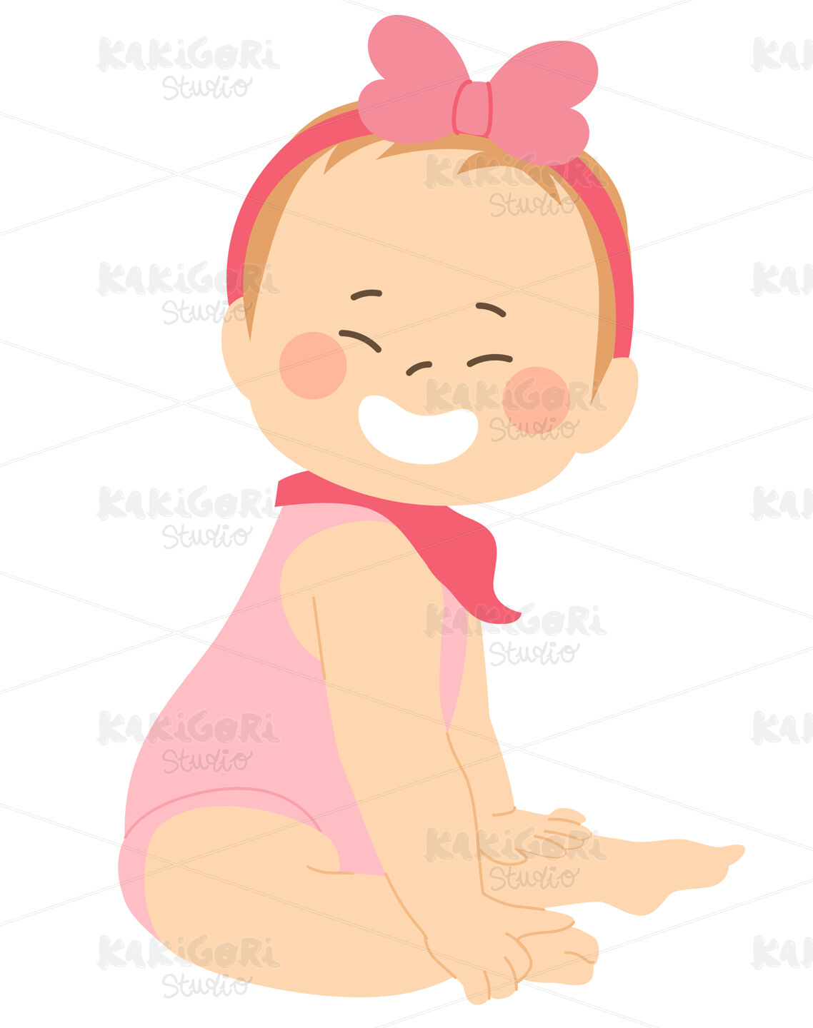 / Funny Baby Girl Sitting Clipart Vector Illustration 05291