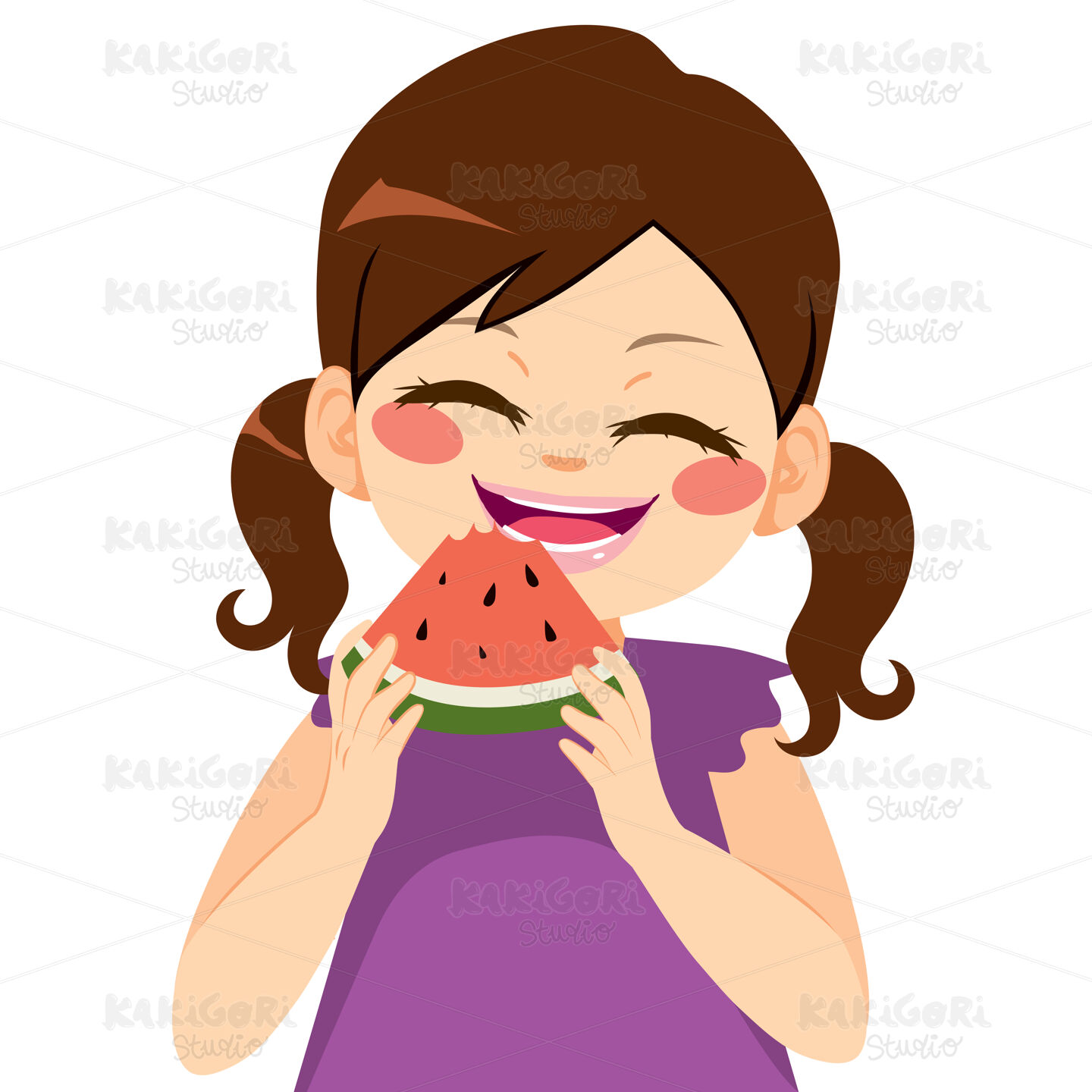 / Girl Eating Watermelon Clipart Vector Illustration 03581