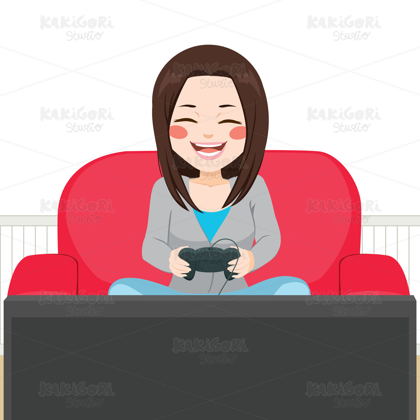 / Girl Playing Video Game Clipart Vector Illustration 03462