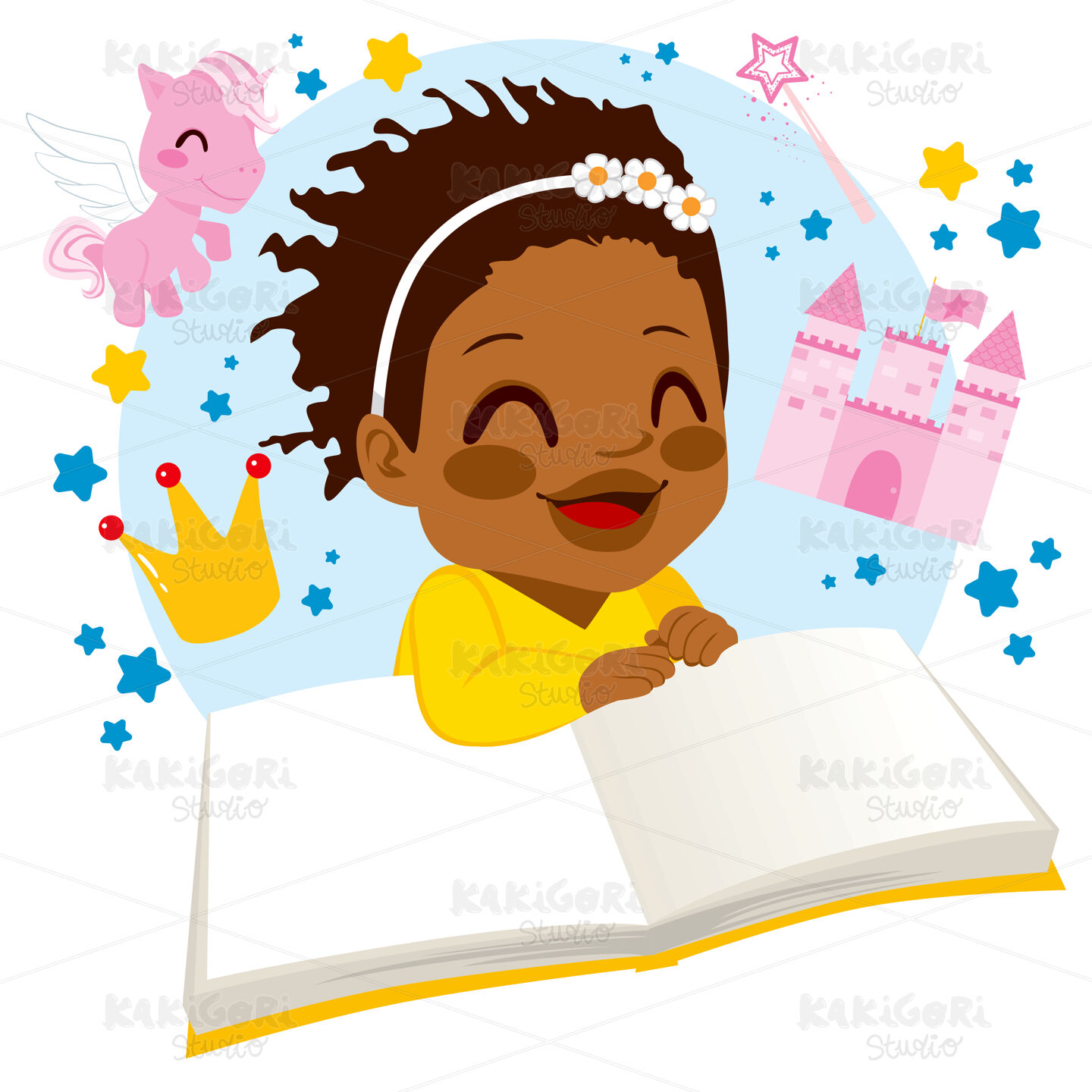 / Girl Reading Fairy Tale Book Clipart Vector Illustration 01153