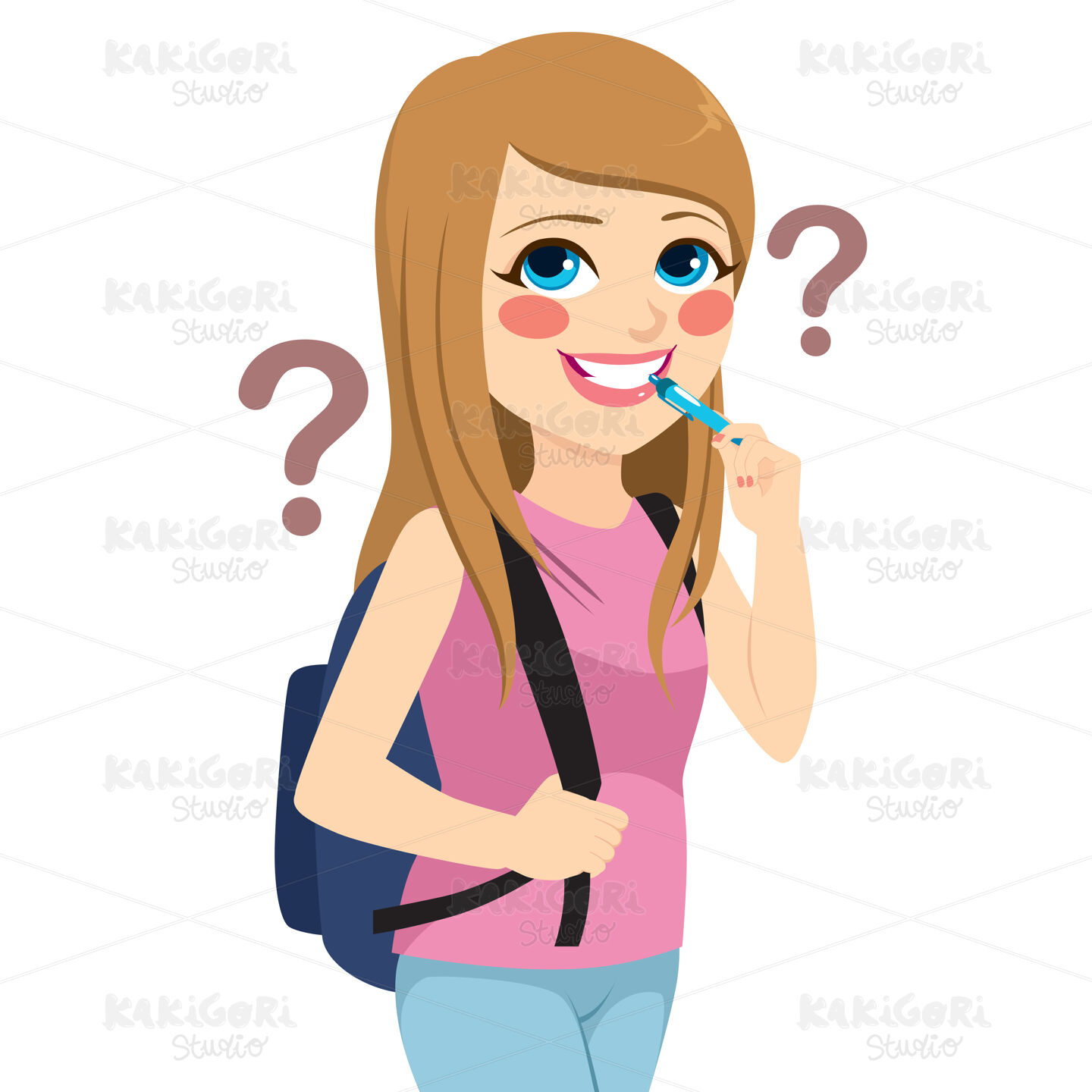 / Girl Student Thinking Clipart Vector Illustration 04222