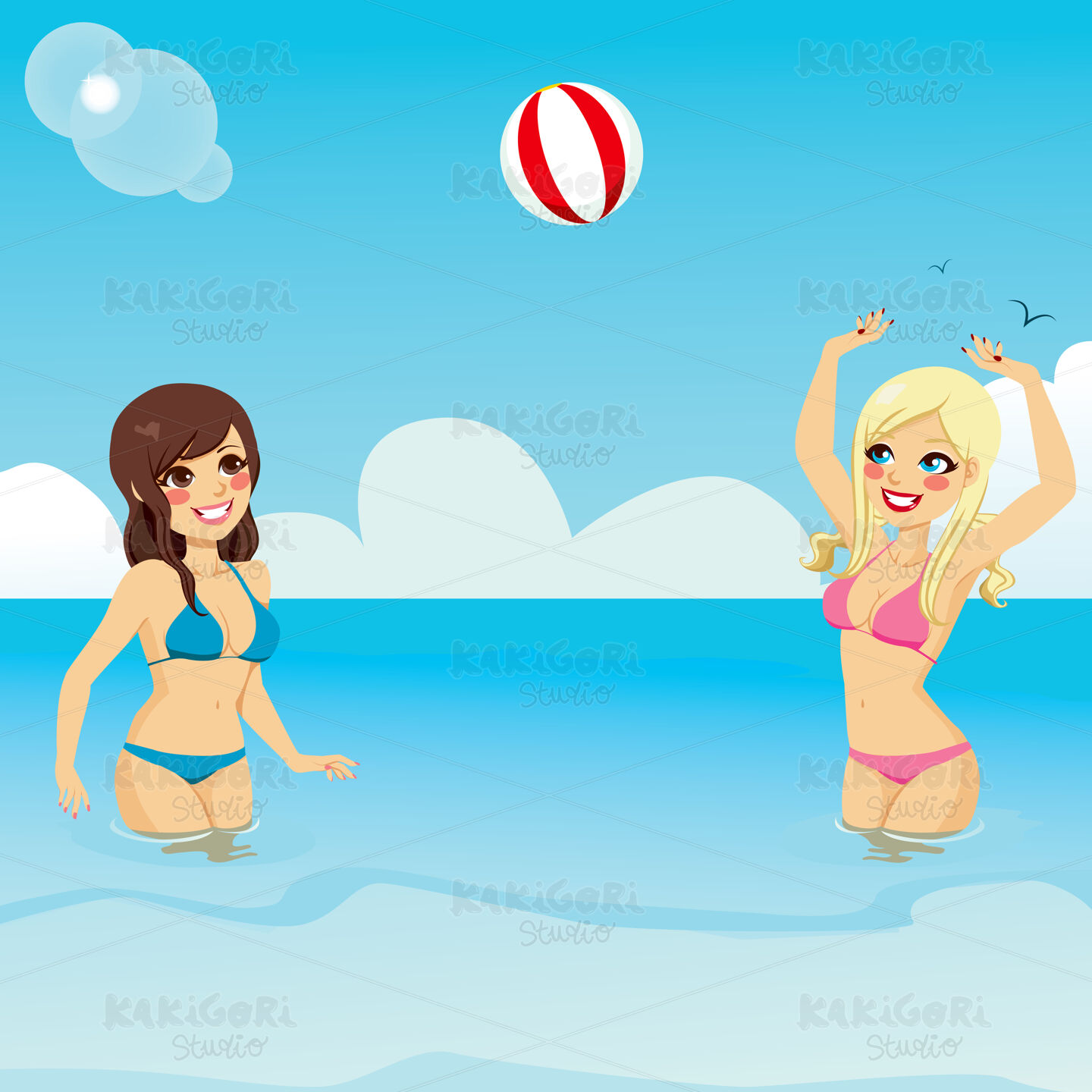 / Girls Playing Beach Ball Clipart Vector Illustration 01470