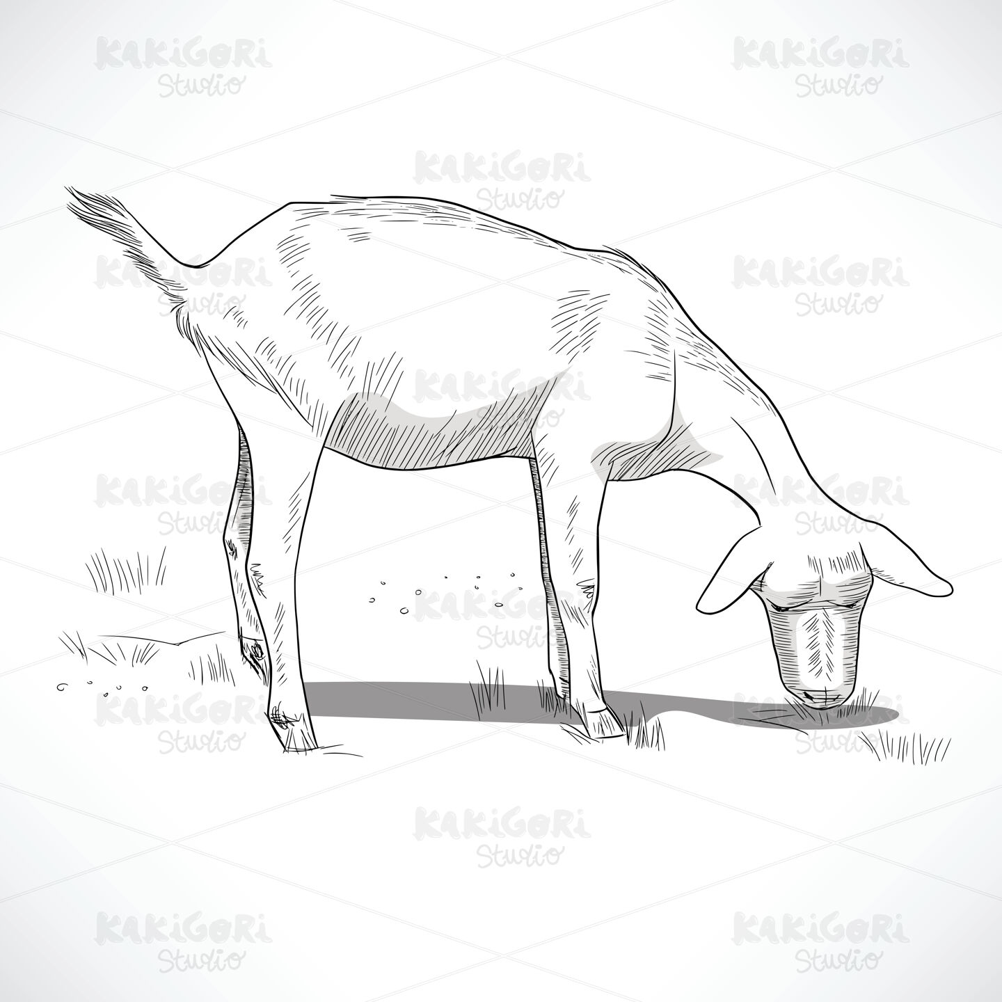 / Goat Eating Grass Clipart Vector Illustration 01955