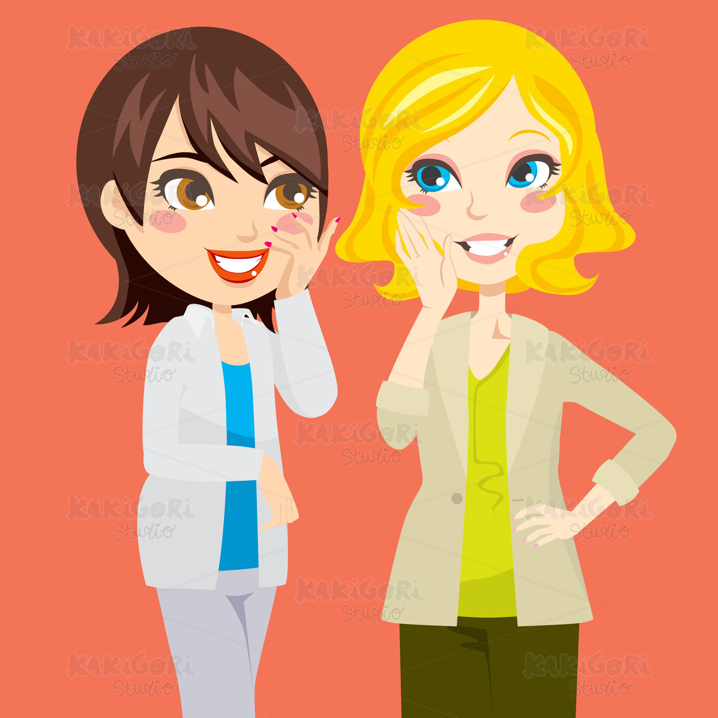 / Gossiping Women Clipart Vector Illustration 00432