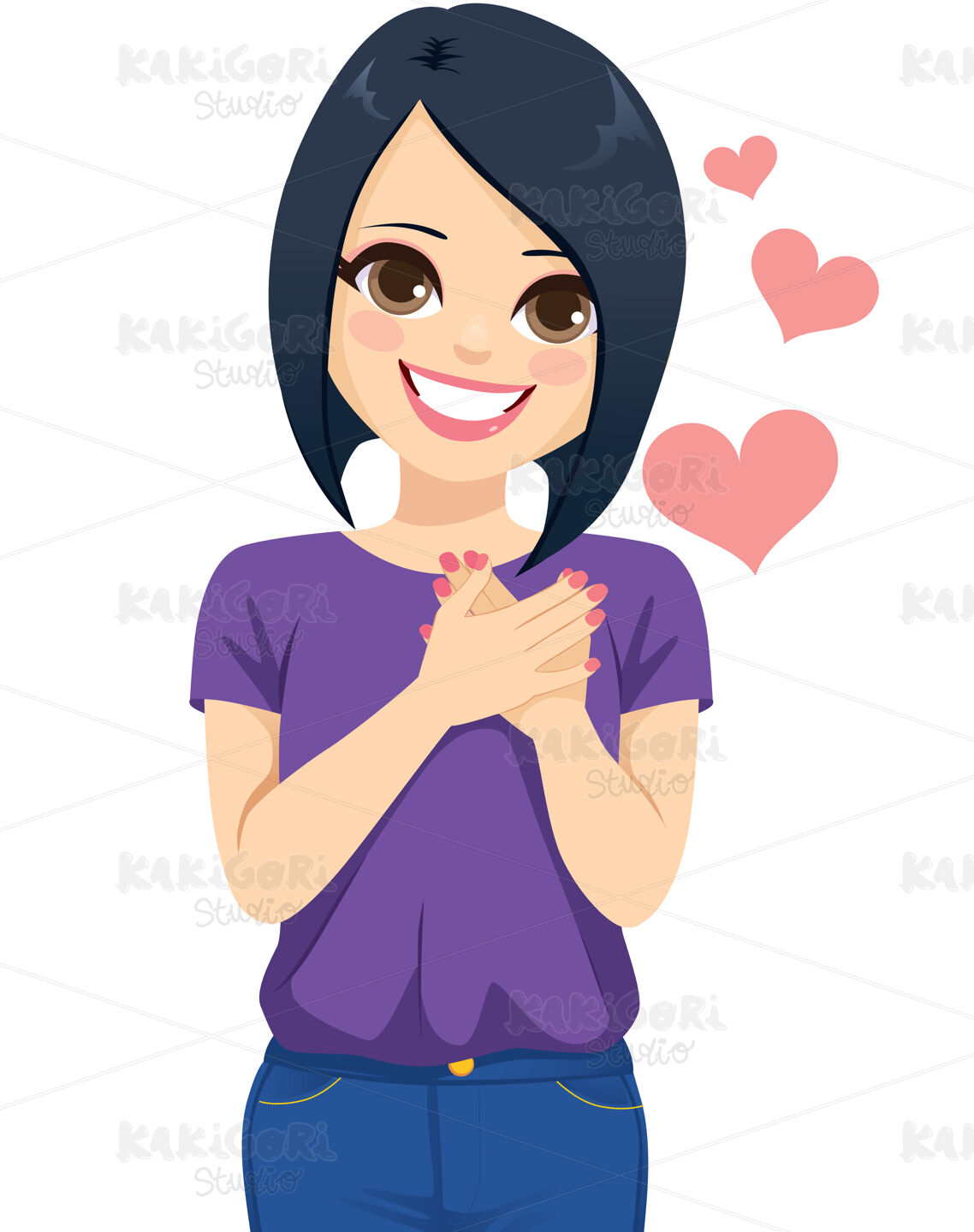 Young woman with hands on heart making lovely grateful face expression gratitude gesture
