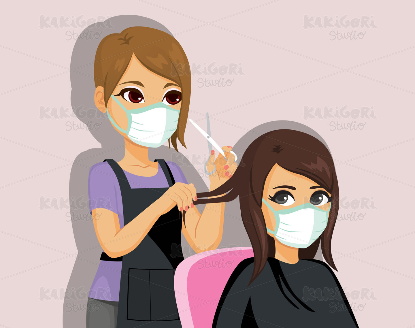 Young professional hairdresser working with face medical mask on coronavirus pandemic time