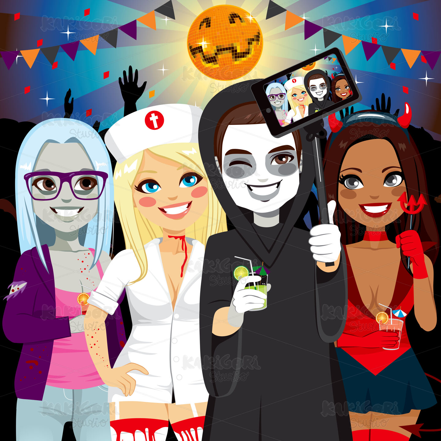 / Halloween Adult Party Selfie Clipart Vector Illustration 02410