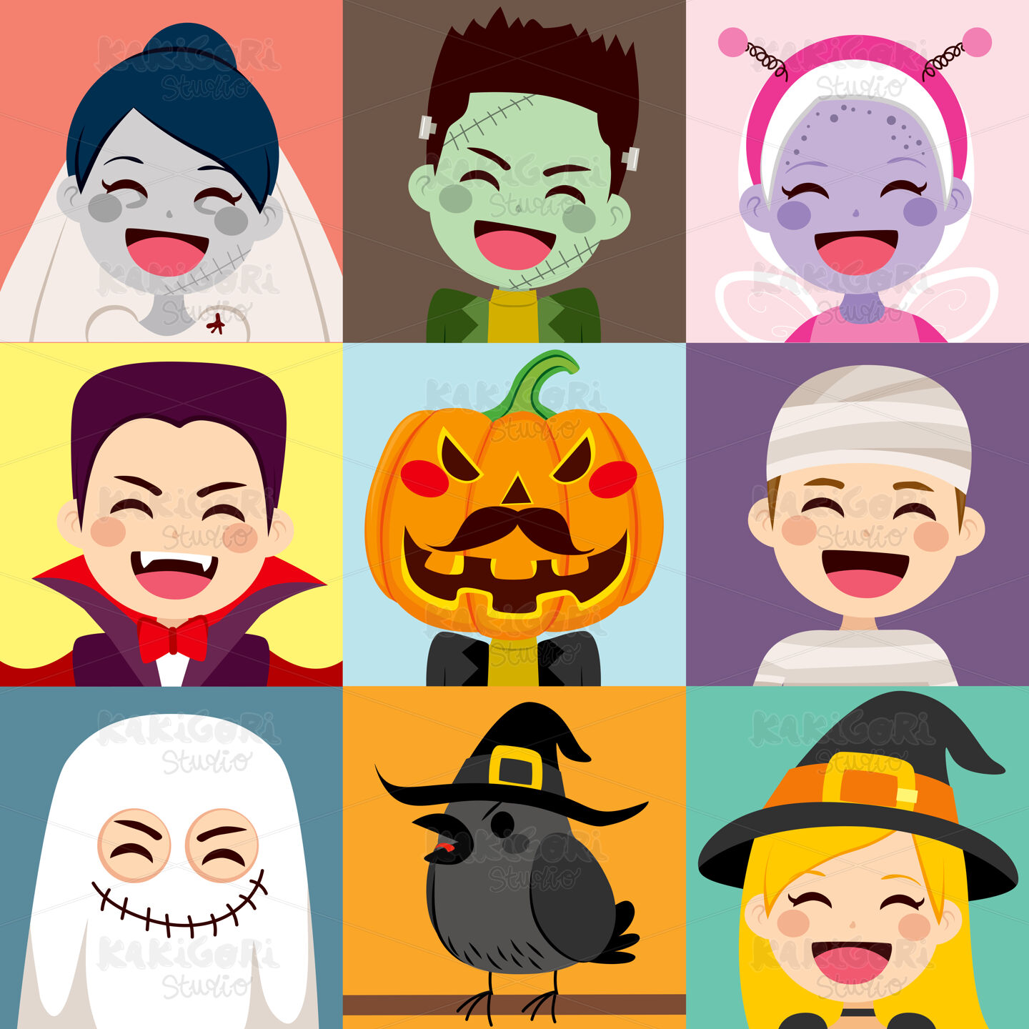 / Halloween Children Avatar Clipart Vector Illustration 02907