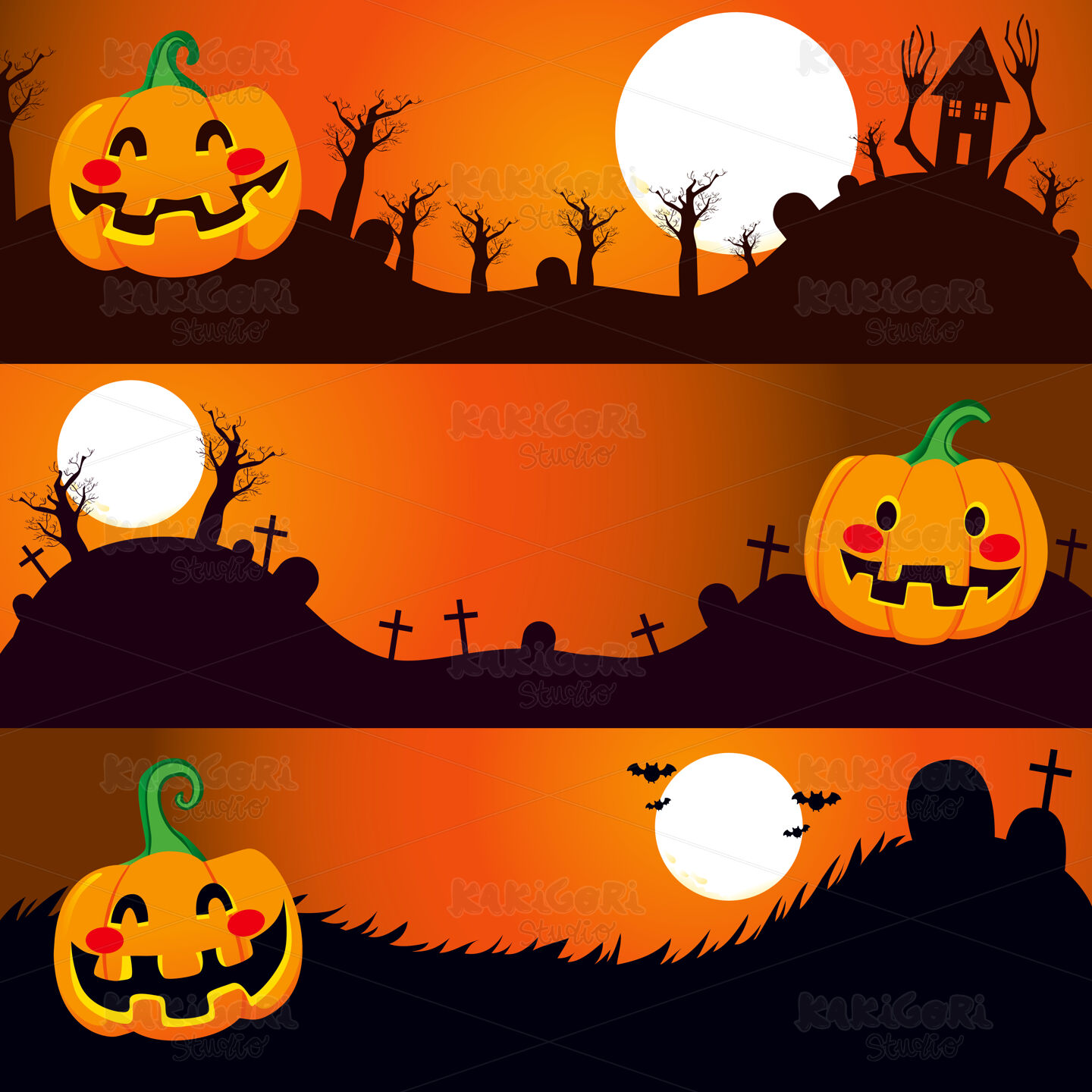 / Halloween Night Banners Clipart Vector Illustration 00974