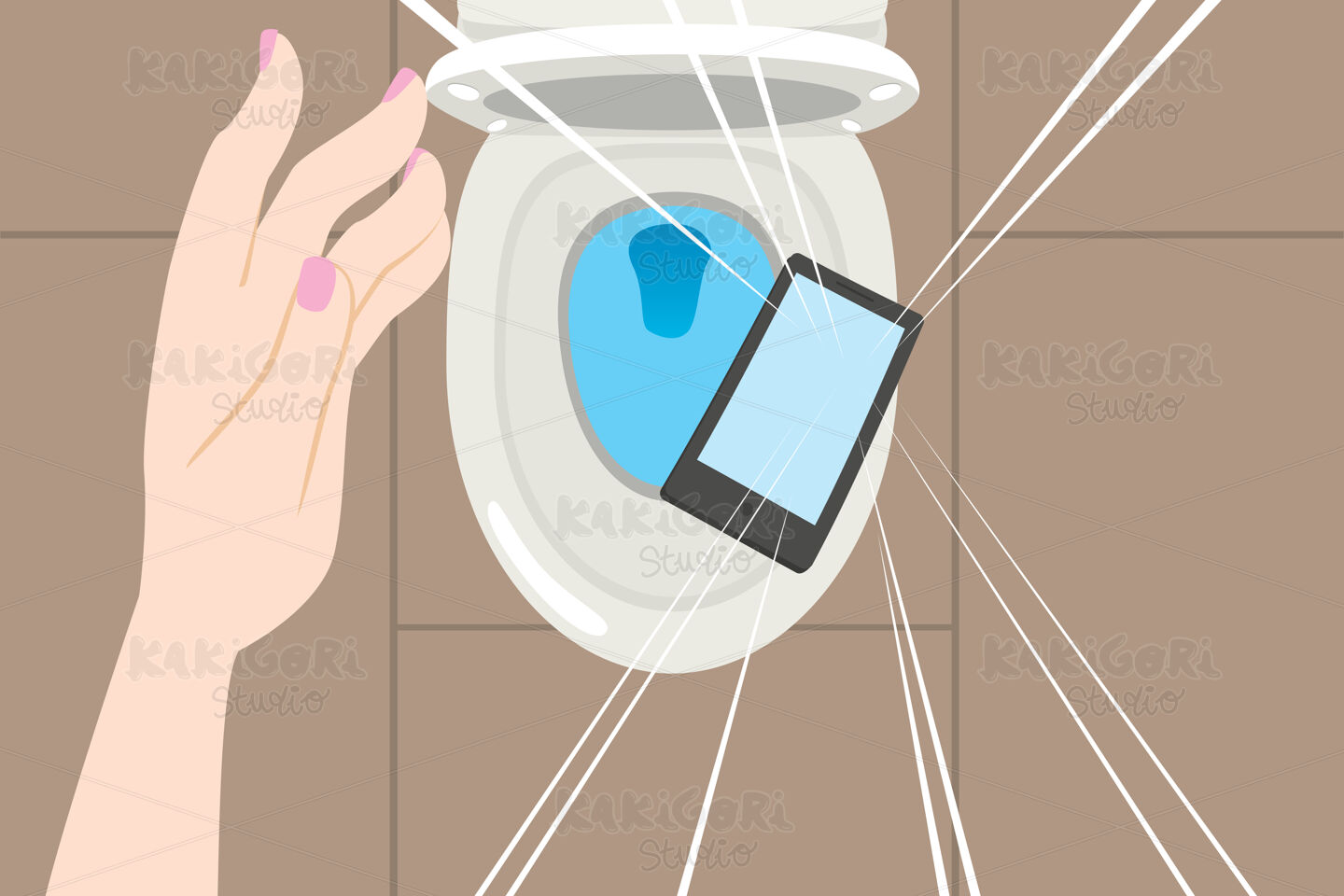 / Hand Dropping Smartphone On Toilet Clipart Vector Illustration 04797
