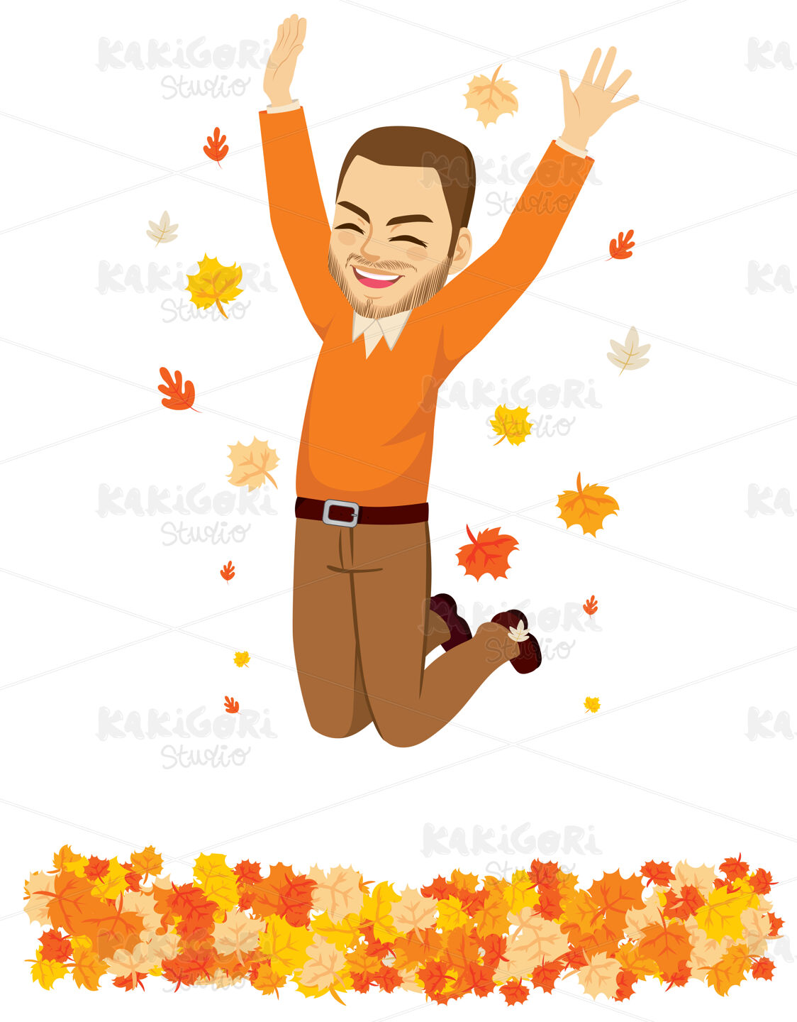 / Happy Autumn Time Man Jumping Clipart Vector Illustration 05108