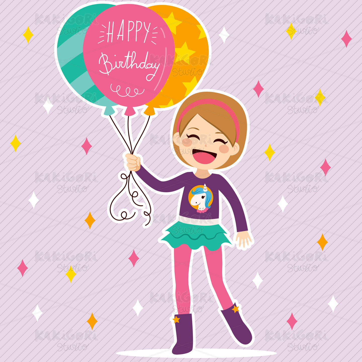 / Happy Birthday Balloons Girl Clipart Vector Illustration 02661
