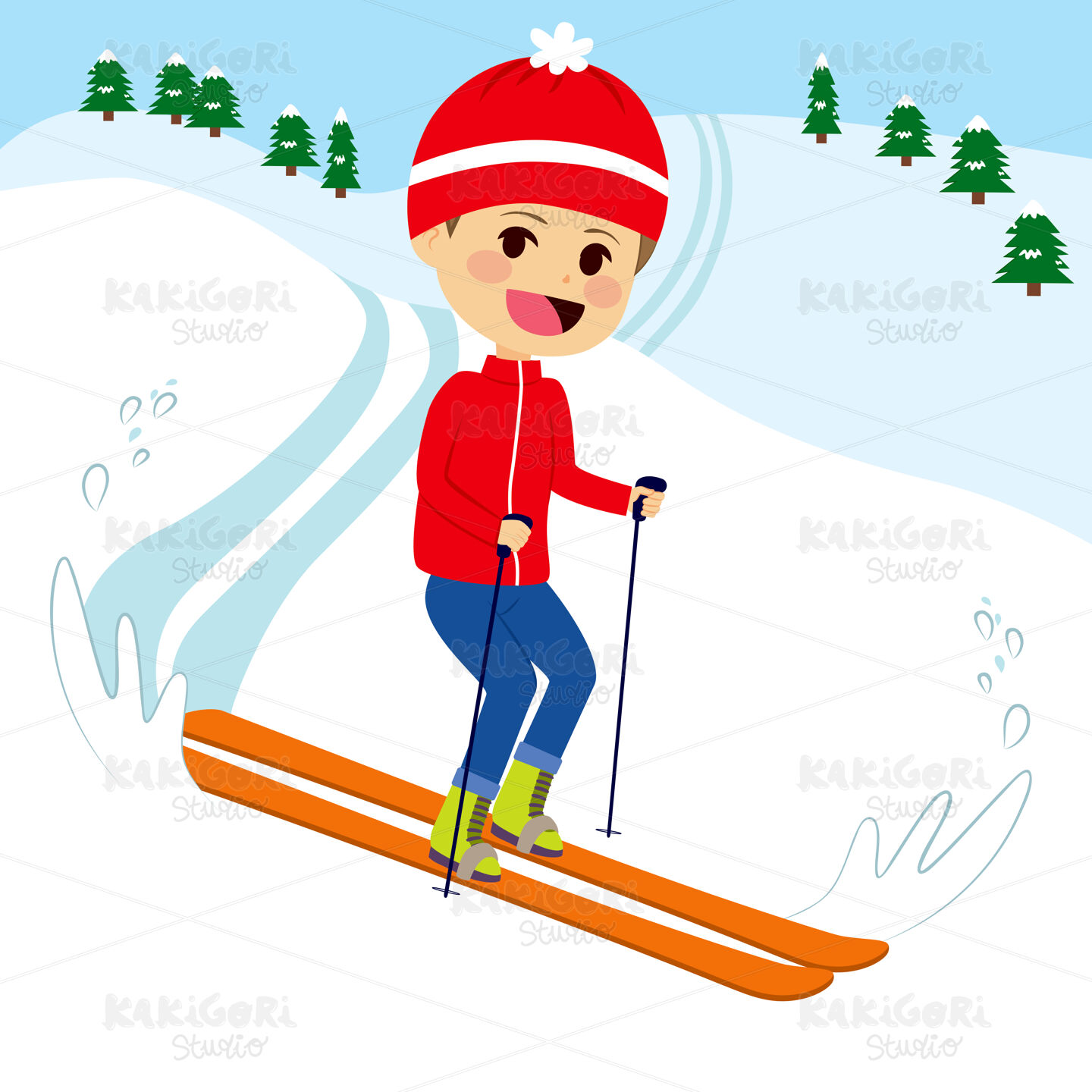 / Happy Boy Skiing Clipart Vector Illustration 02425