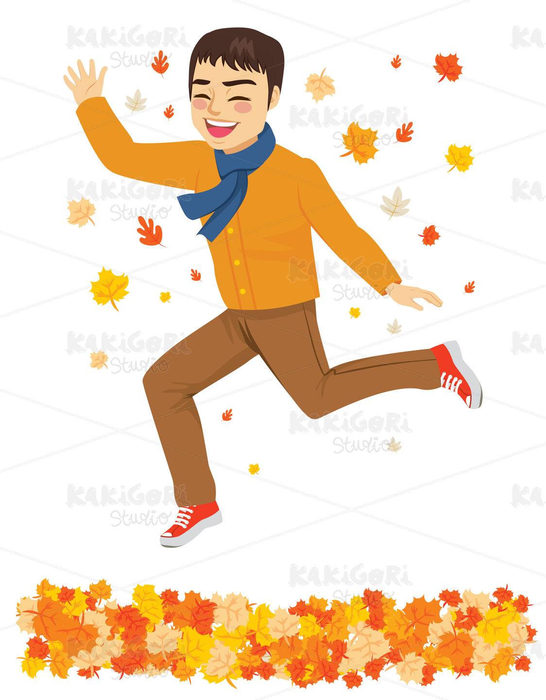 / Happy Fashion Man Autumn Jumping Clipart Vector Illustration 05110