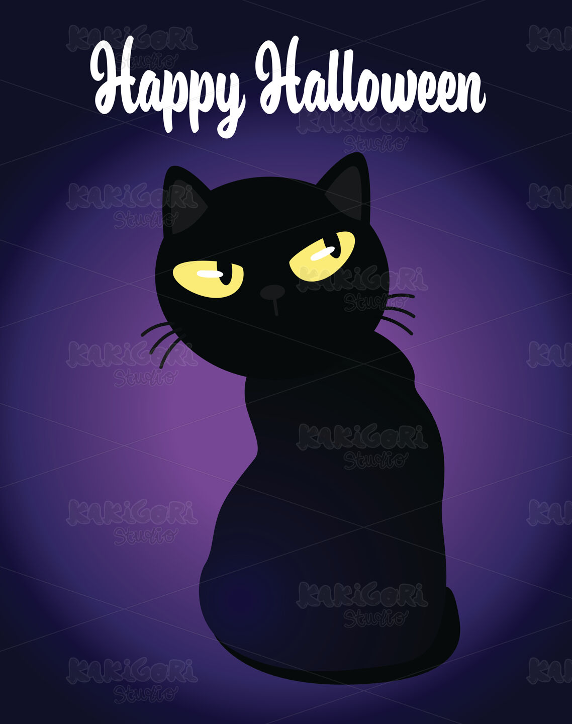 / Happy Halloween Black Cat Eyes Clipart Vector Illustration 05014