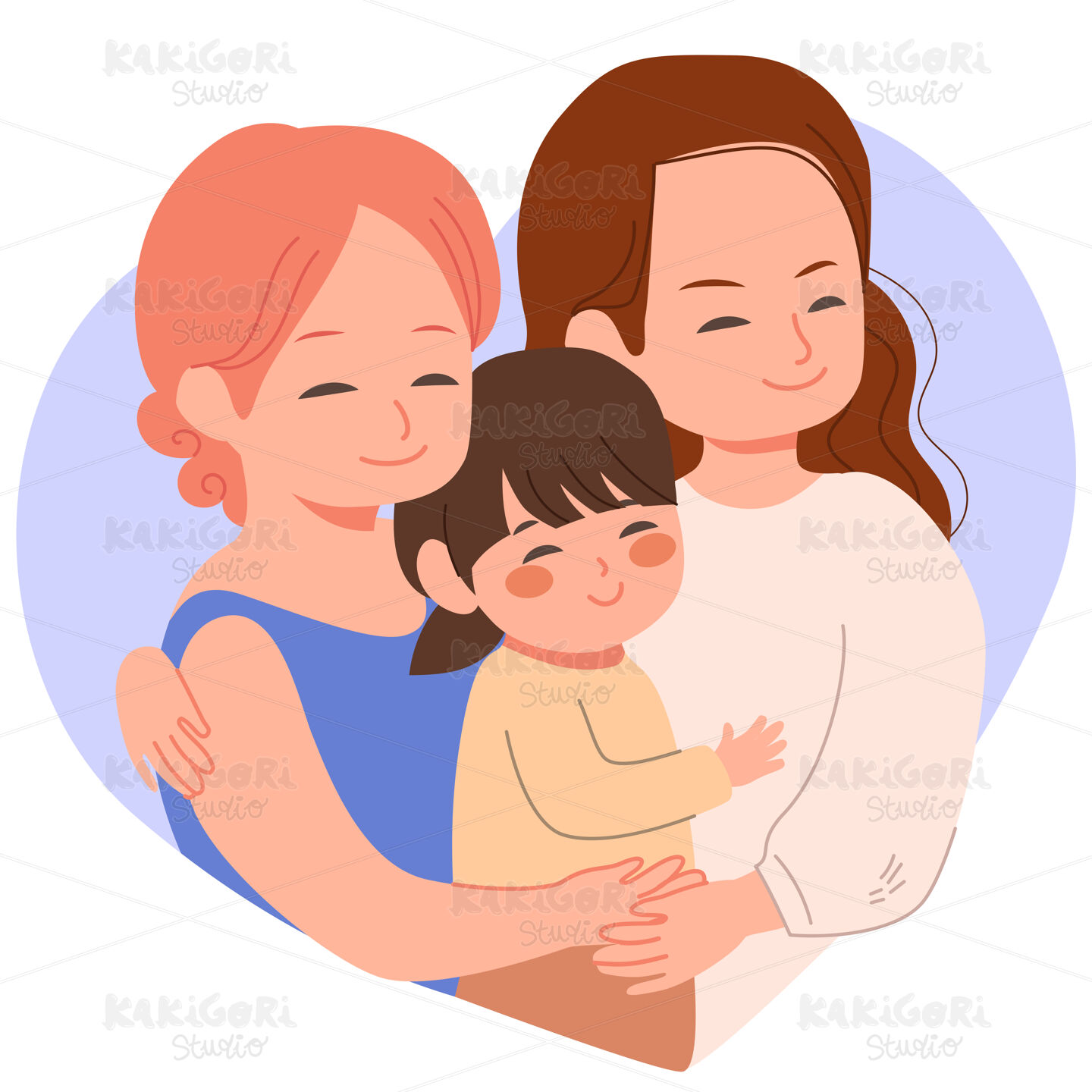 / Happy Homosexual Family Hugging Clipart Vector Illustration 05301