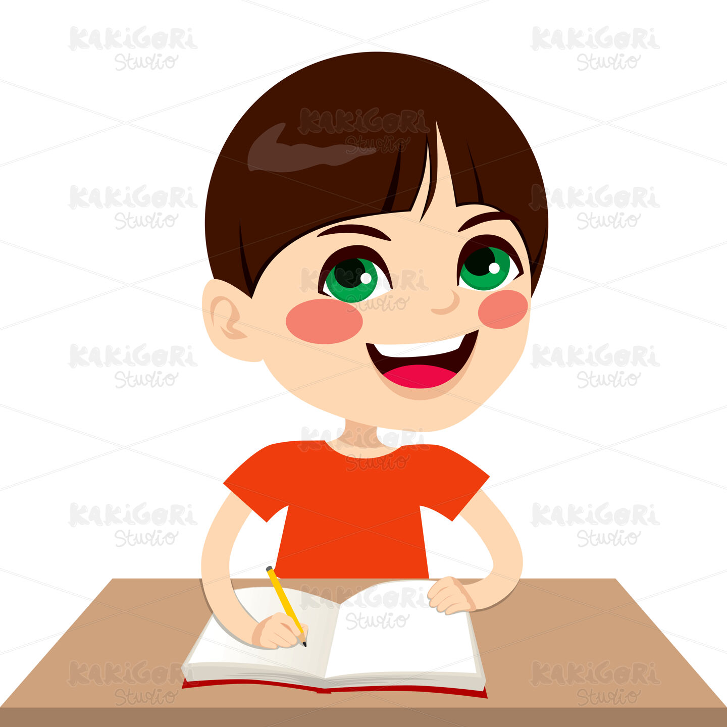 / Happy Student Boy Writing Clipart Vector Illustration 01752