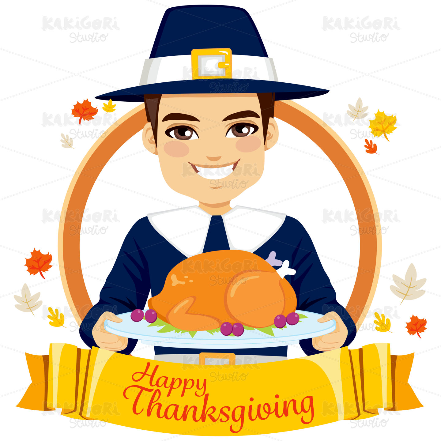 / Happy Thanksgiving Pilgrim Man Clipart Vector Illustration 03154