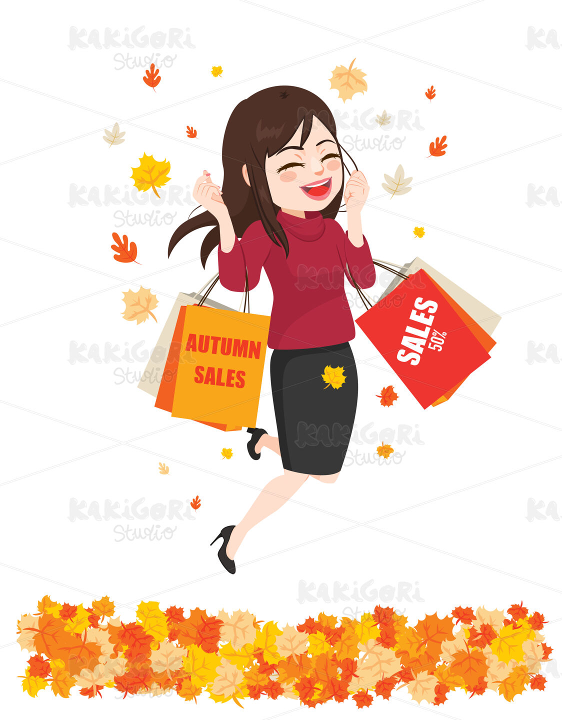 / Happy Woman Autumn Sales Shopping Clipart Vector Illustration 05109