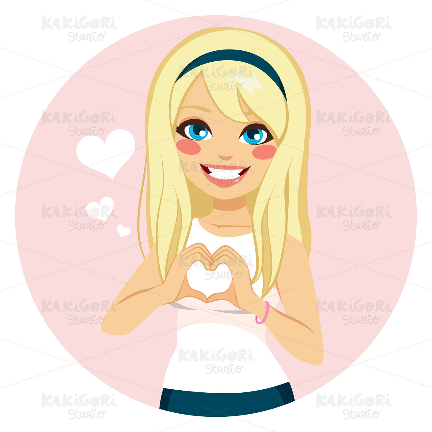 Beautiful blonde girl making heart shape with hands on Saint Valentine day