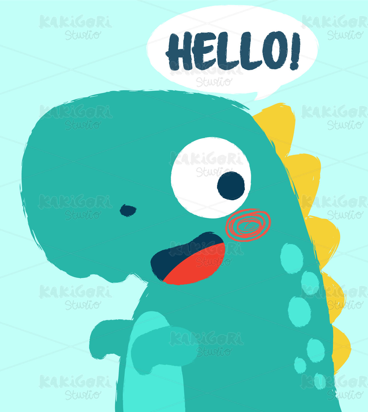 / Hello Cute Dinosaur Clipart Vector Illustration 05206