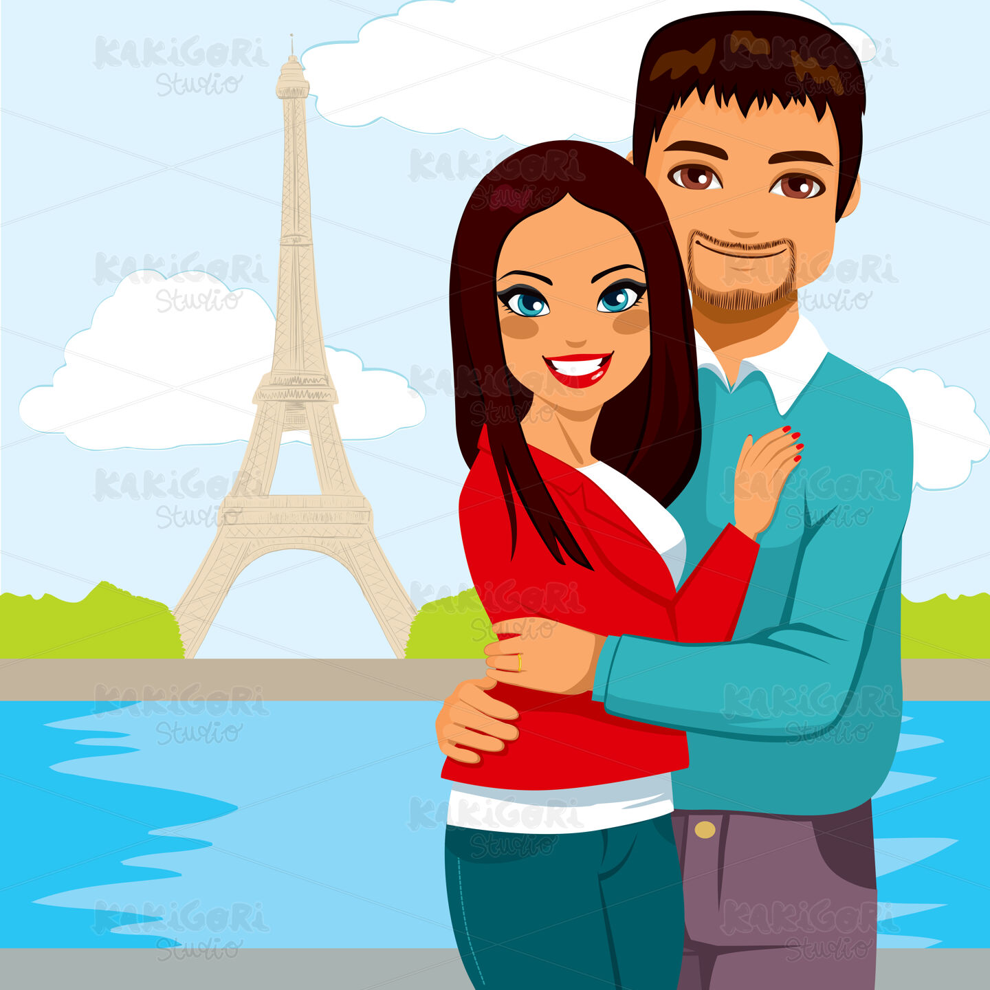 / Indian Couple Paris Clipart Vector Illustration 02063
