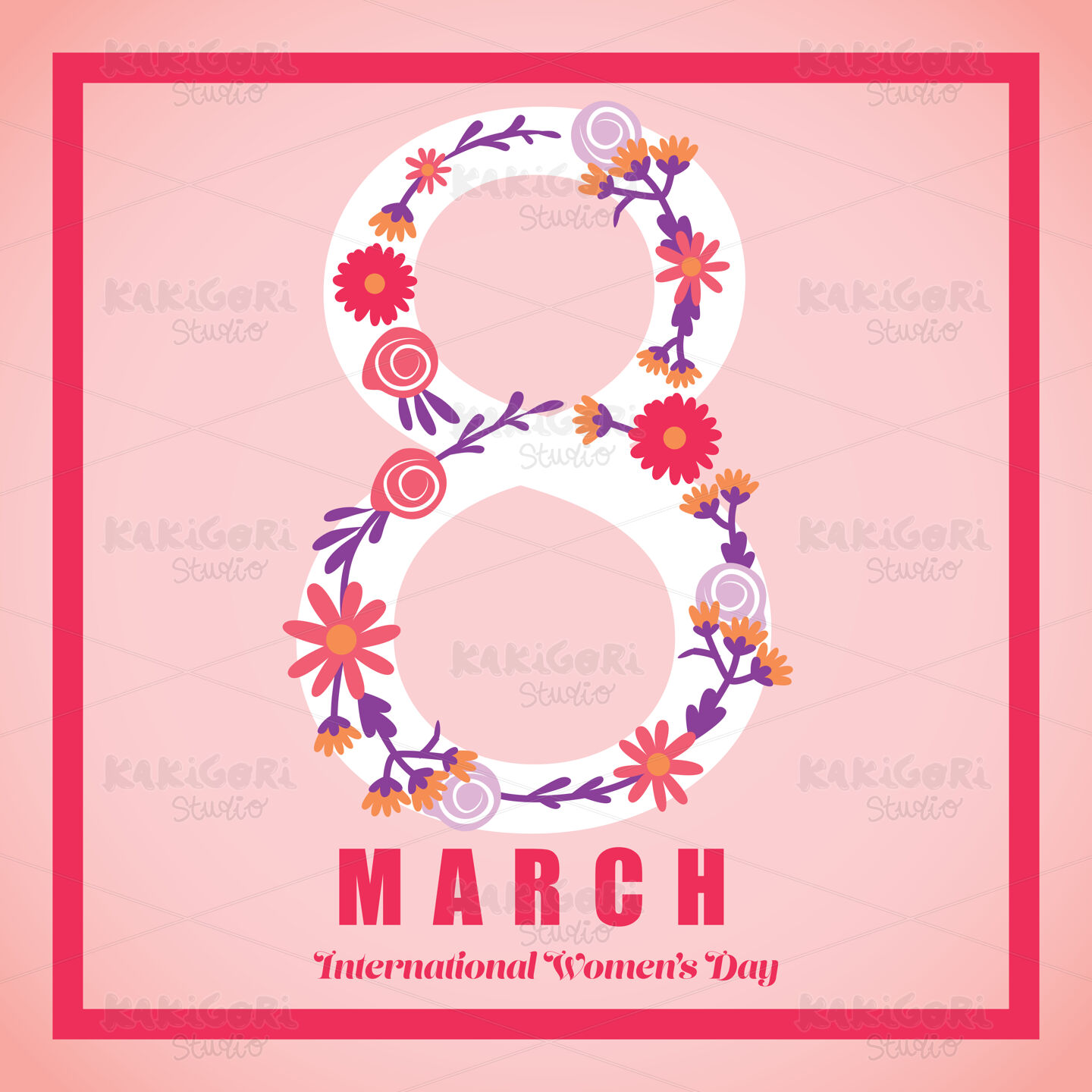 8 March International women day pink greeting card design