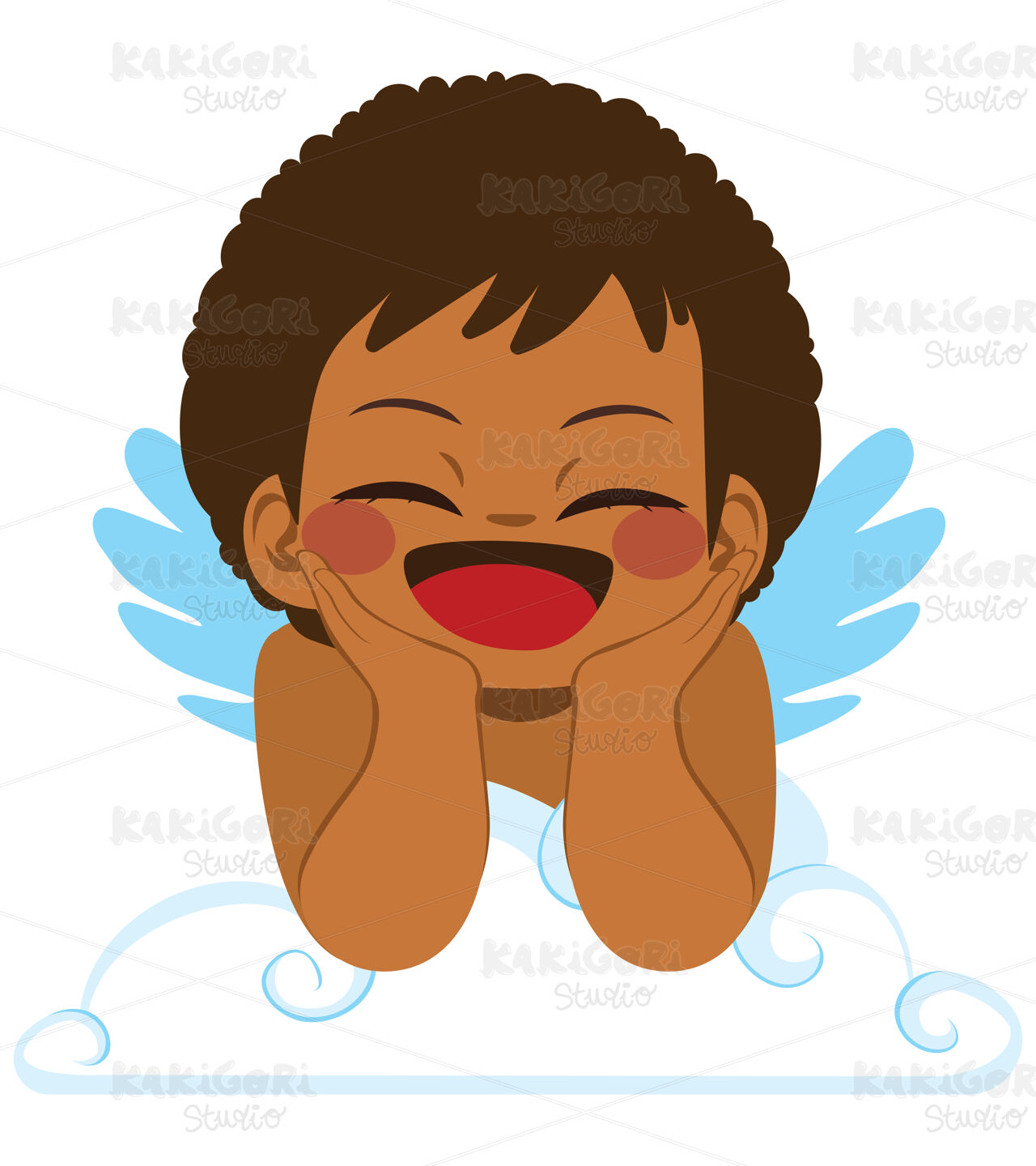 / Isolated Cupid Smiling On Cloud Clipart Vector Illustration 05239
