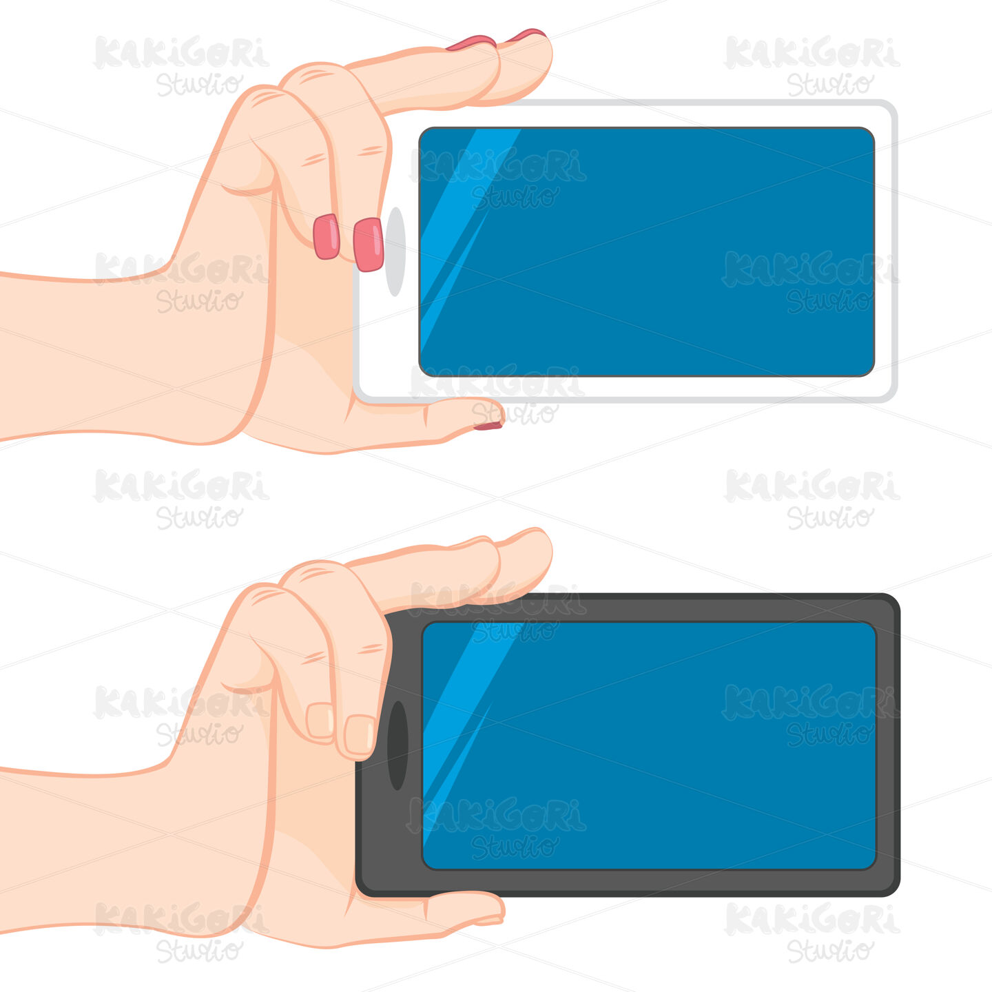 Isolated Human male and female hands holding blank horizontal smartphone isolated on white background