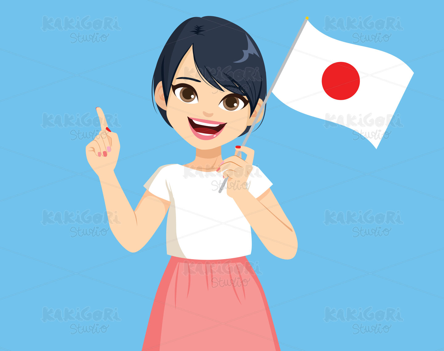 / Japanese Woman Holding Japan Flag Clipart Vector Illustration 05545