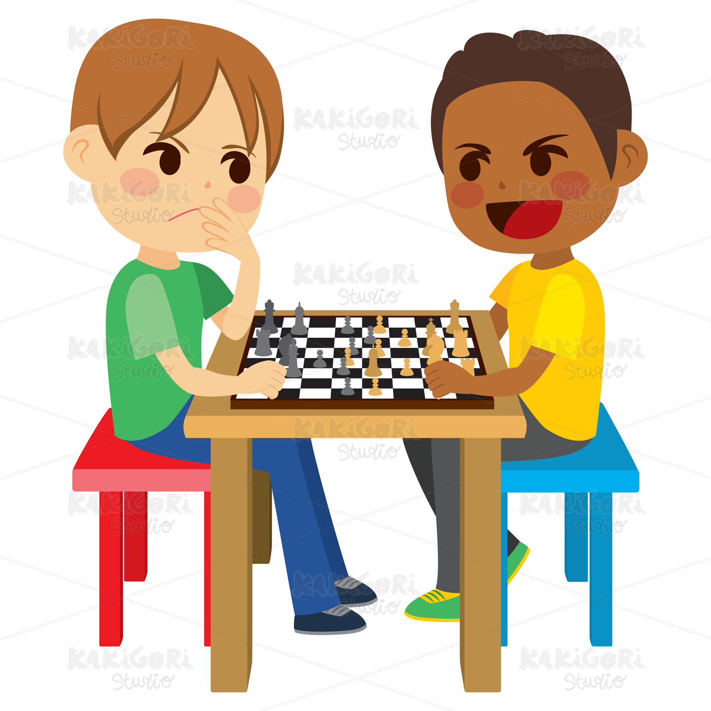 / Kids Playing Chess Clipart Vector Illustration 03361