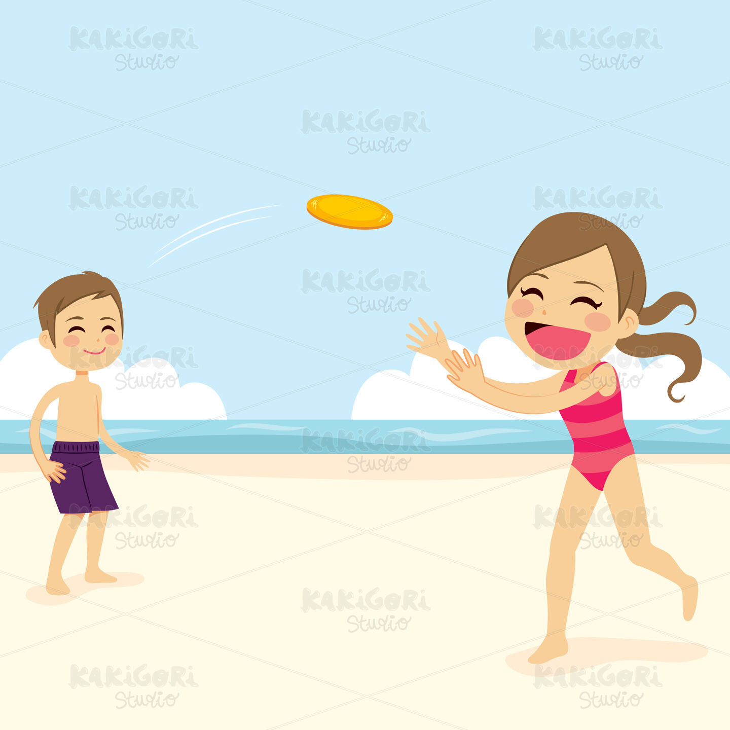 / Kids Playing Flying Disk Clipart Vector Illustration 02240