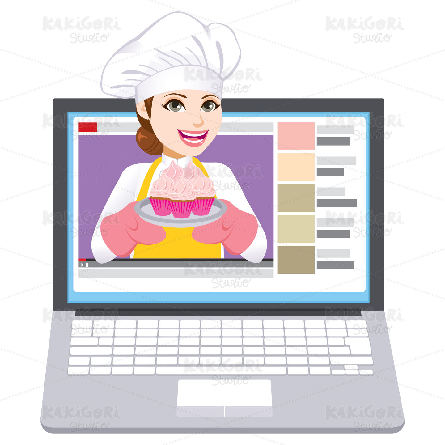 / Laptop Video Vlog Chef Woman Clipart Vector Illustration 04706