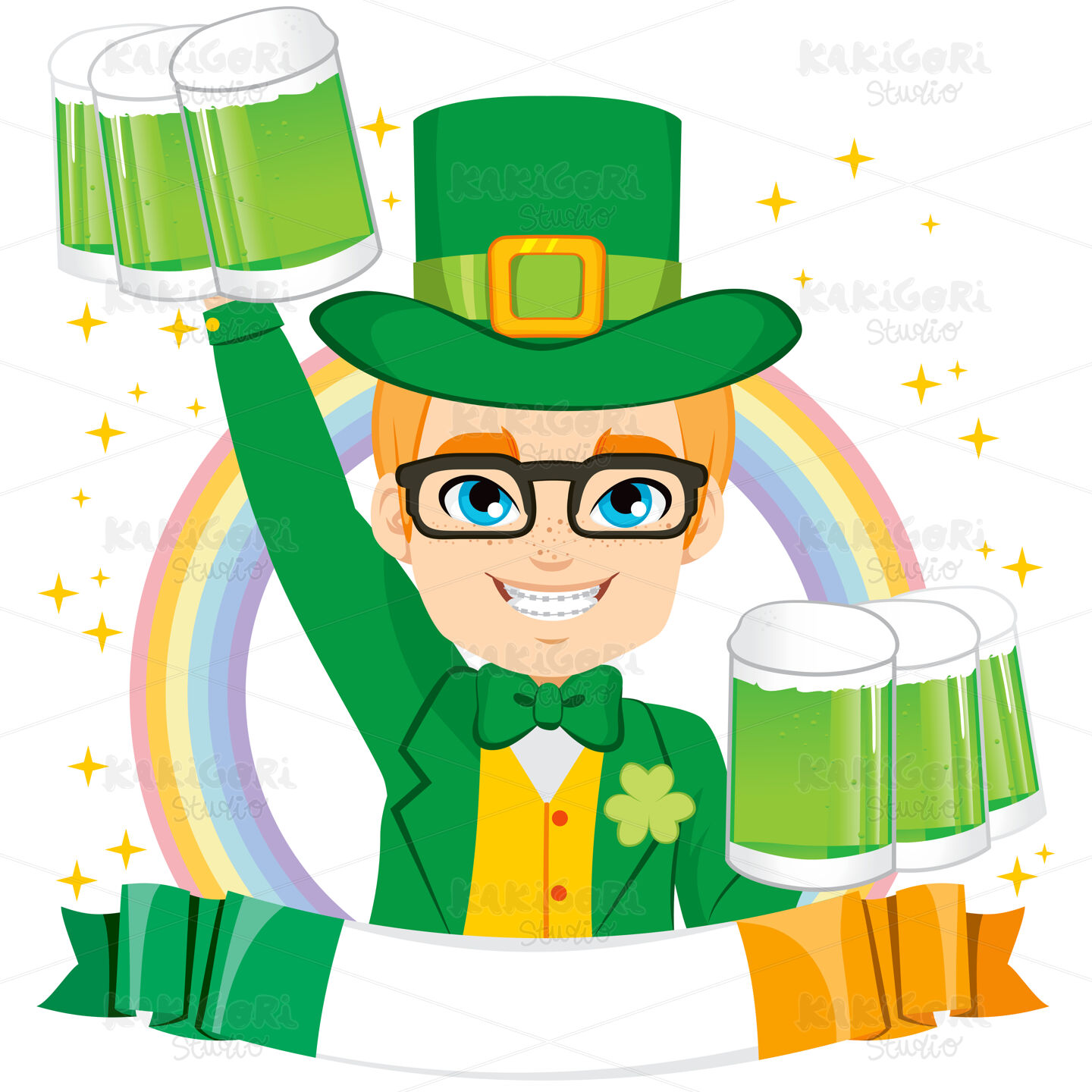 / Leprechaun Boy Holding Green Beer Clipart Vector Illustration 02560
